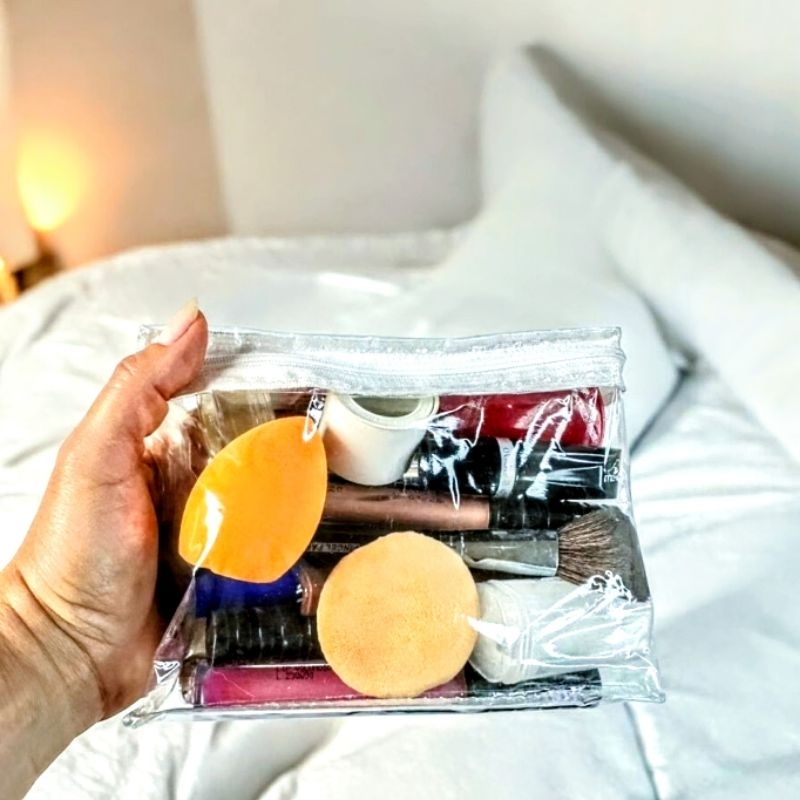 Kit c/ 25 Necessaire Viés transparente e Zíper branco - Organizador Multiuso Lembrancinha Festa Brinde Maquiagem Bolsa