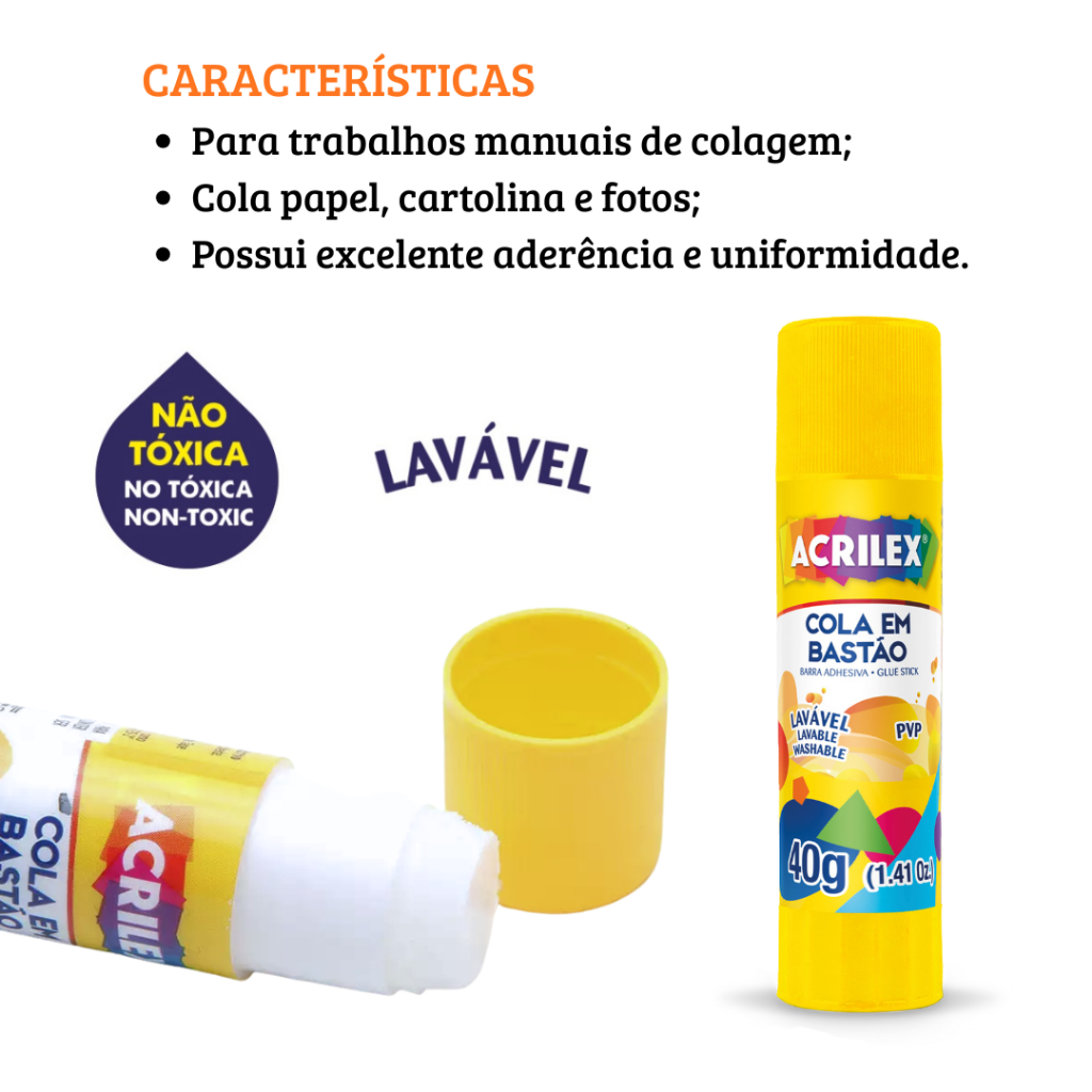 Cola Bastão Escolar 20g Não Tóxica - Acrilex