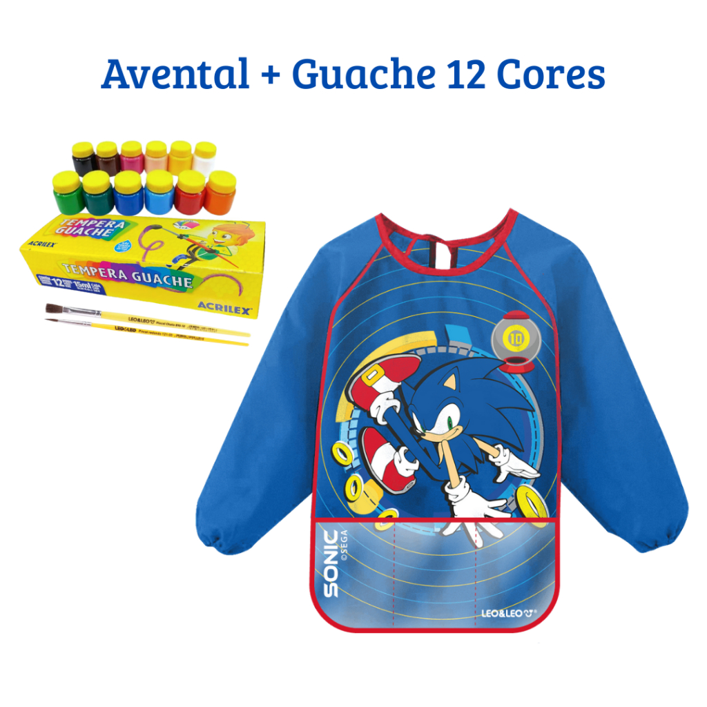 Avental Sonic Bolso Triplo Com Tinta Guache 12 Cores - Kit Selecionavel