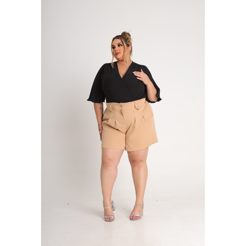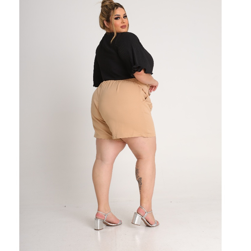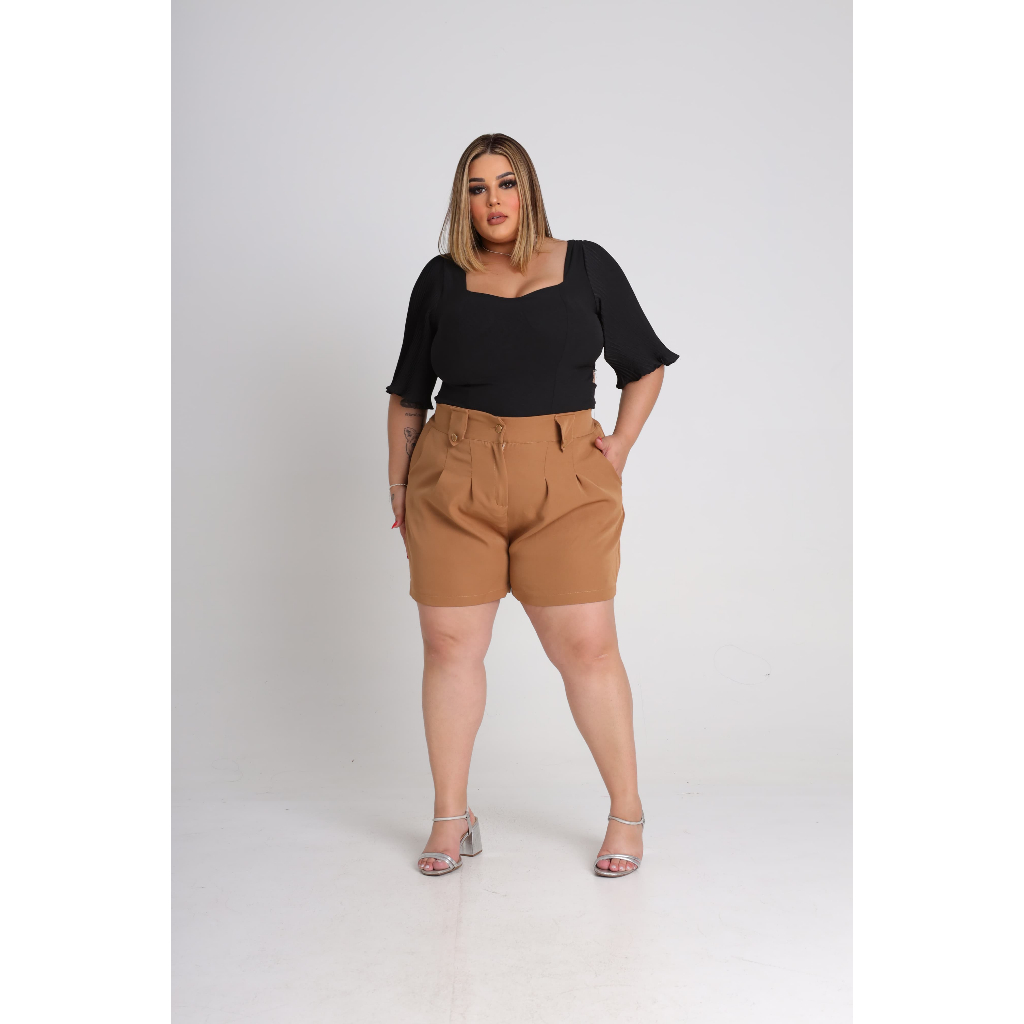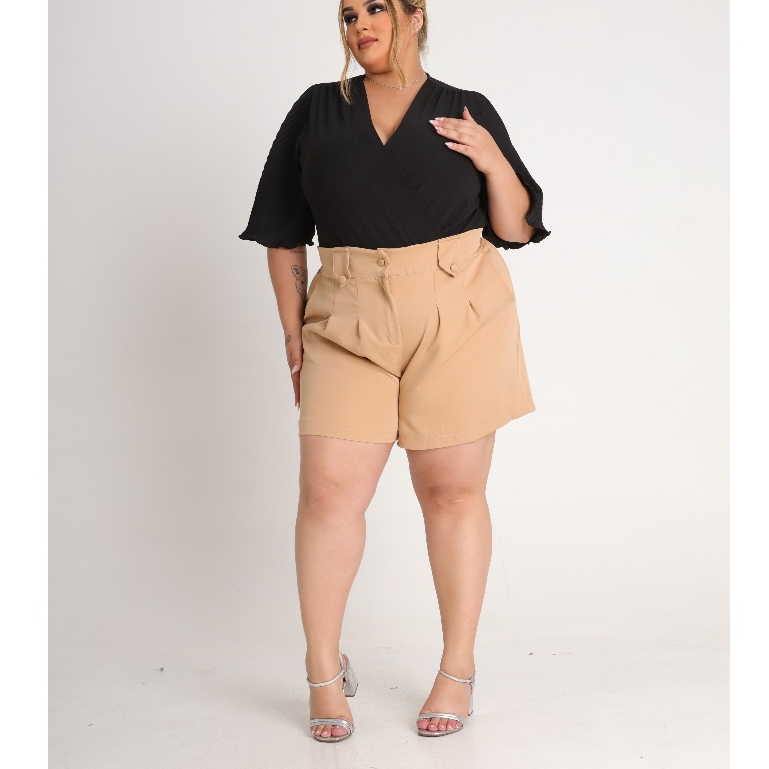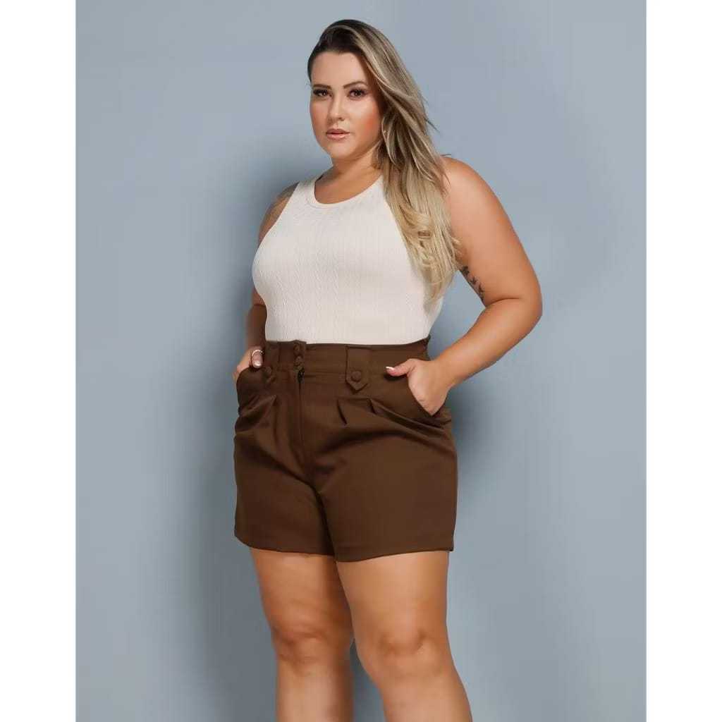 Short Feminino Plus Size Alfaiataria Premium Cintura Alta Bermuda Moda Social Meio Coxa