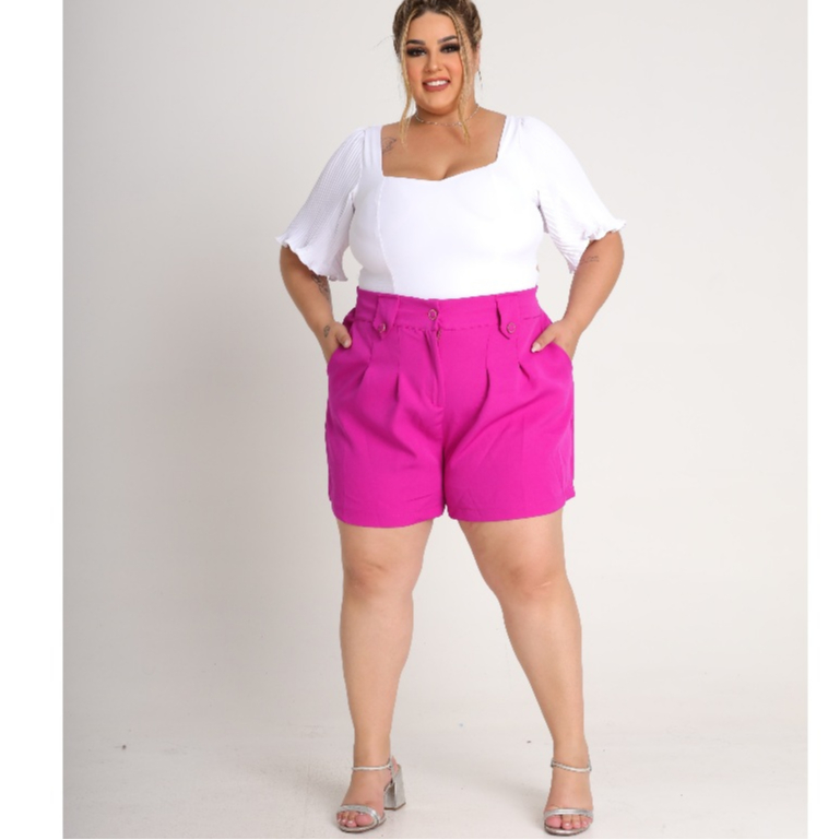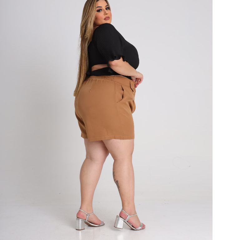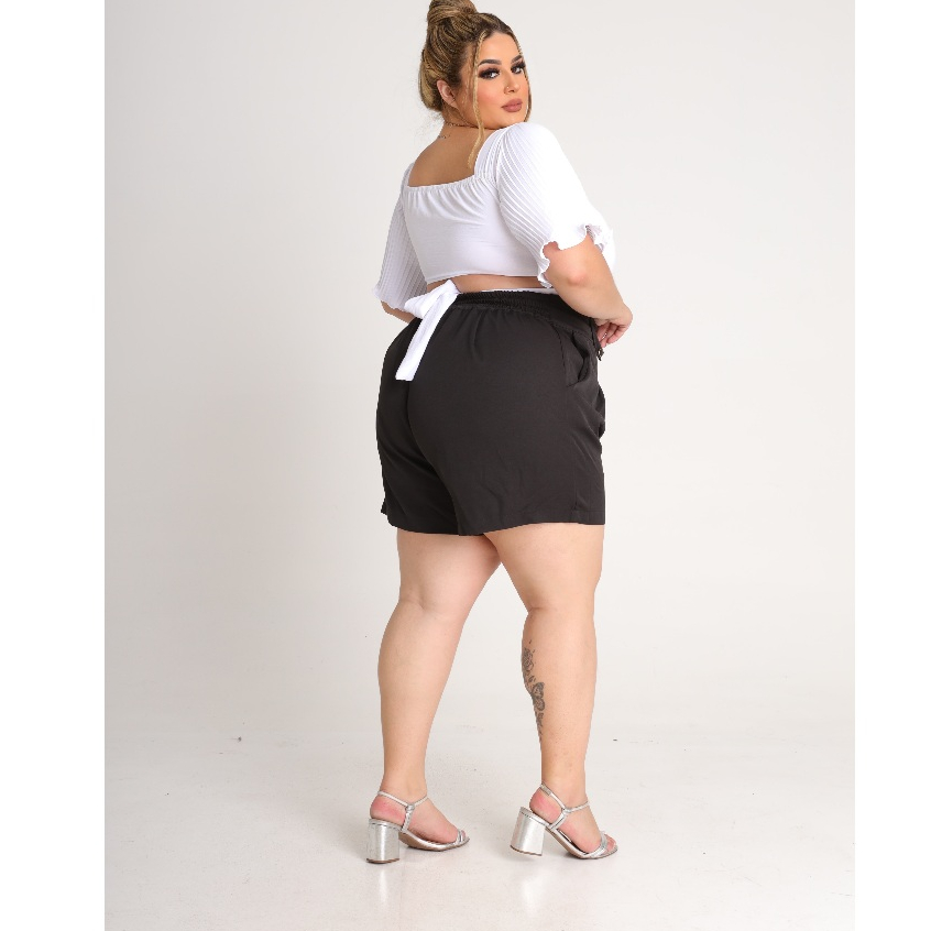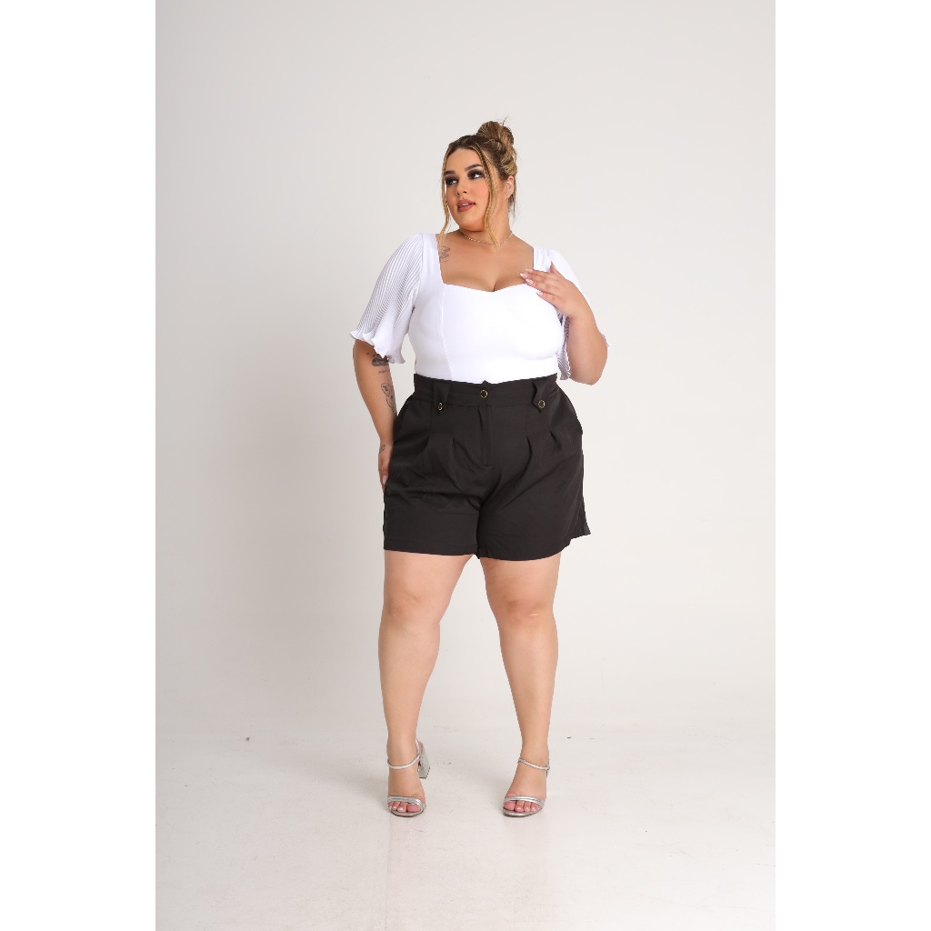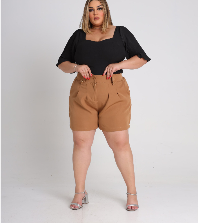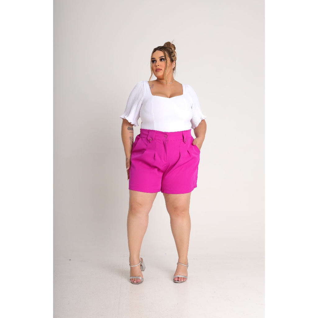 Short Feminino Plus Size Alfaiataria Premium Cintura Alta Bermuda Moda Social Meio Coxa