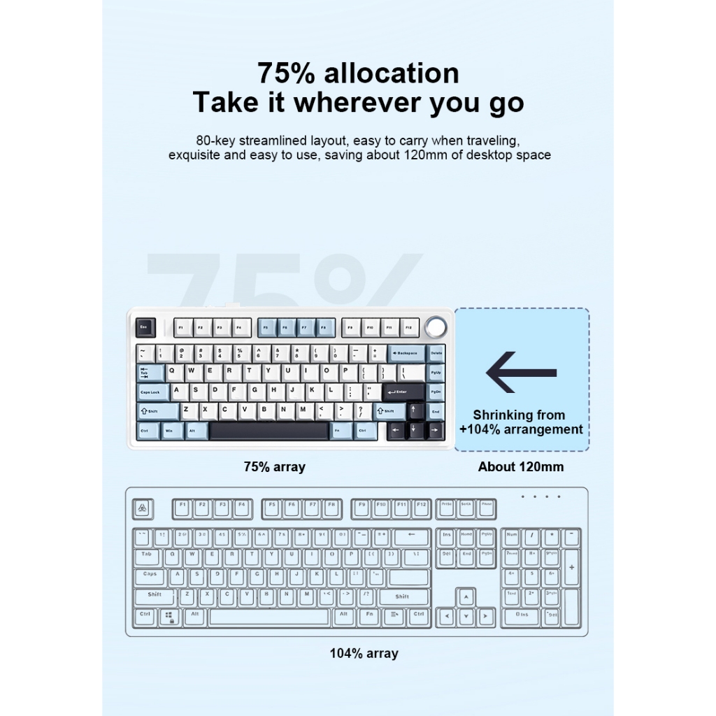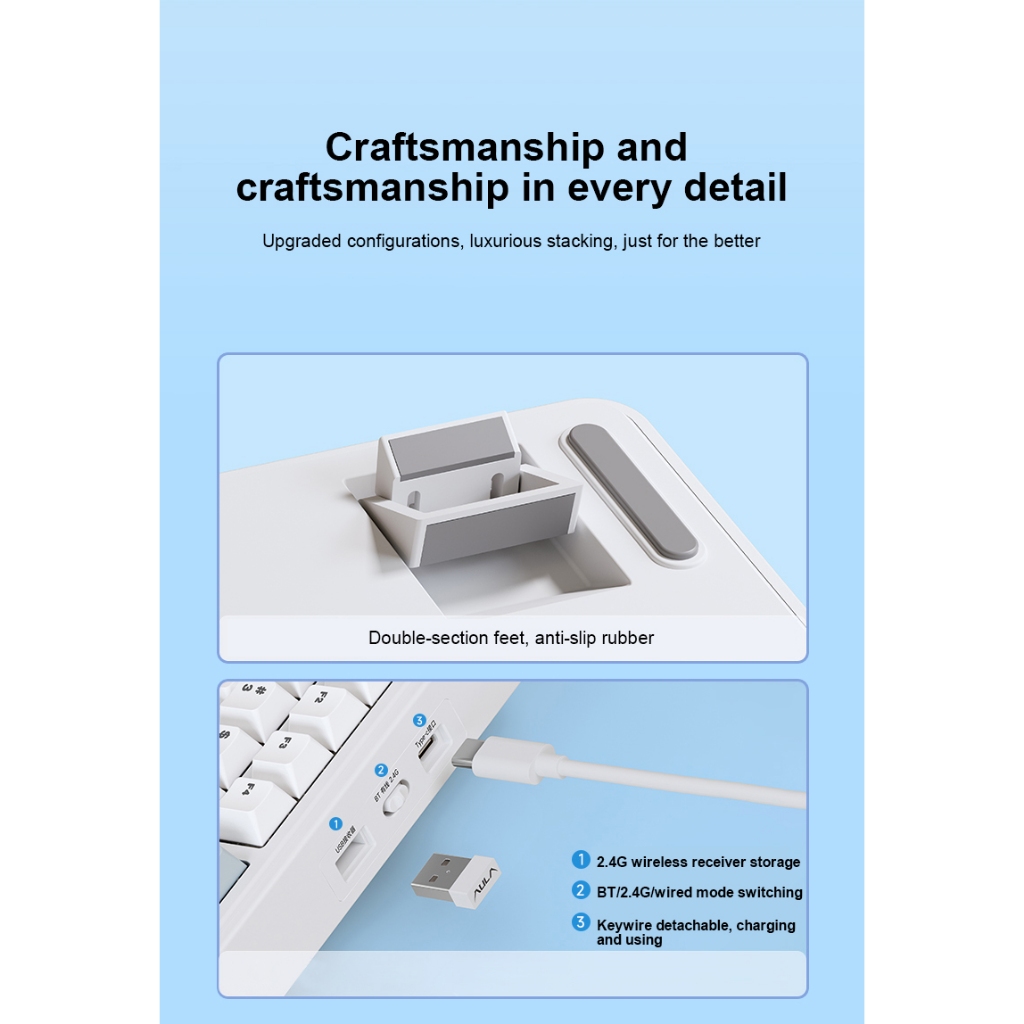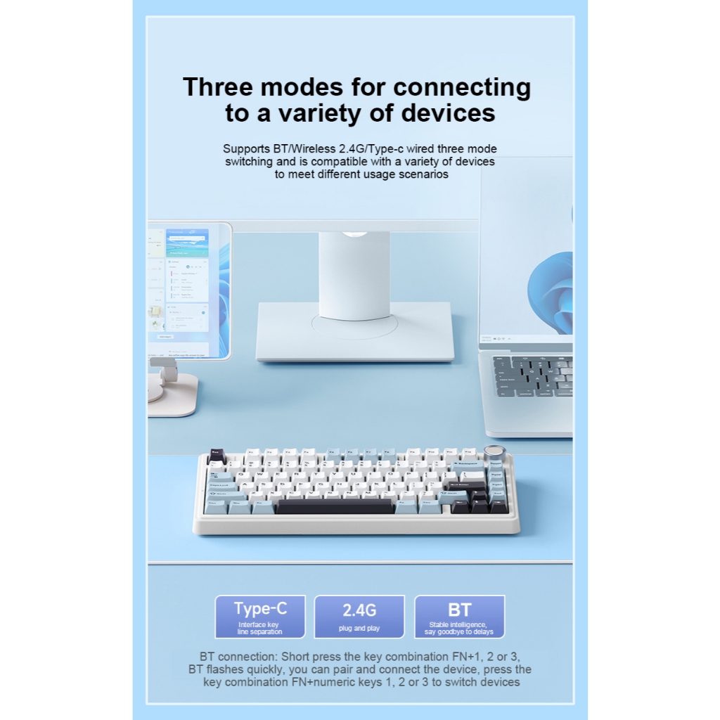 Teclado Gamer Aula F75 Bluetooth 2.4g Sem Fio Com Fio Modo Três Mecânico Para Pc Laptop Pbt RGB