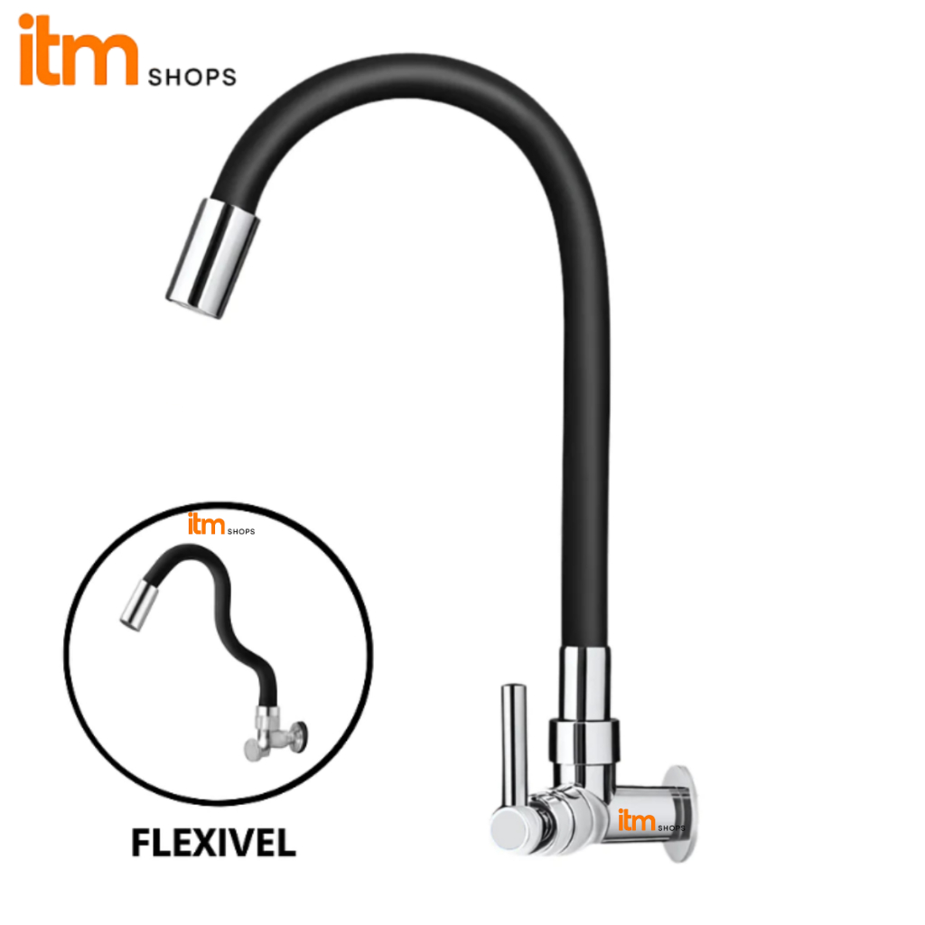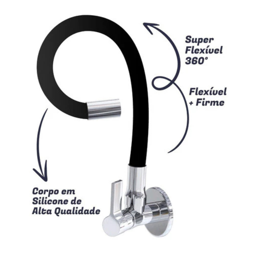 Torneira Gourmet Flexível Cozinha Parede Preta 360° Silicone Com Arejador Alta Pressão