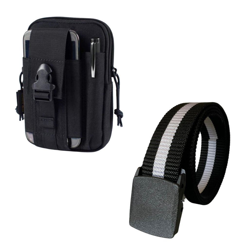 Kit de Bolsa Pochete Táticos Militares e Cinto Largo Antialérgico Multiuso Masculino Feminino