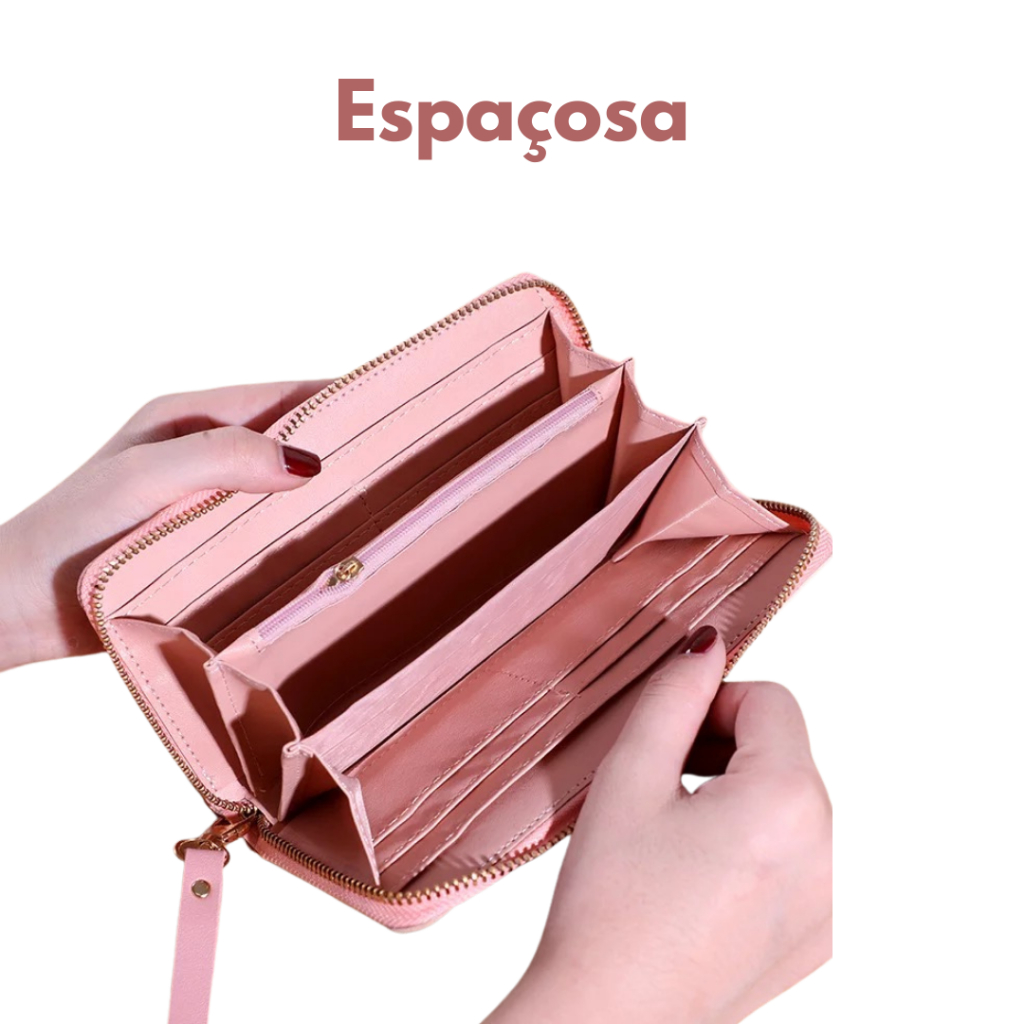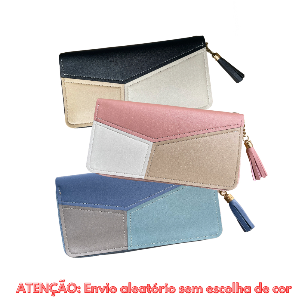 Carteira Feminina Grande De Couro Sintético Porta Cartão Cor