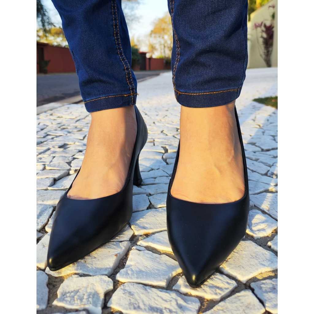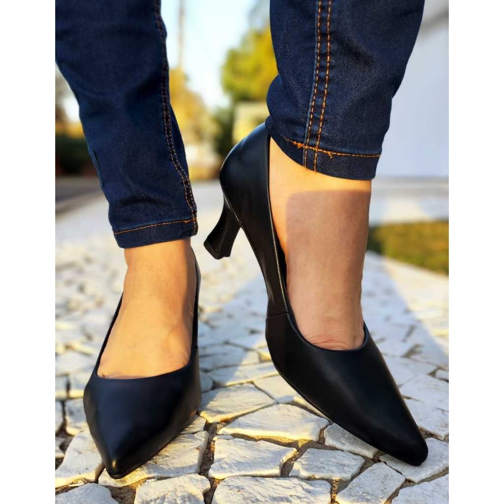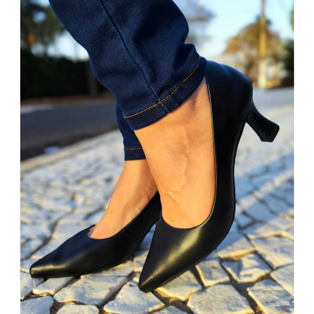 Scarpin Feminino Bico Fino Napa Salto 6cm Médio Grosso Elegante Confortável Casual Festa Moda Evangelica