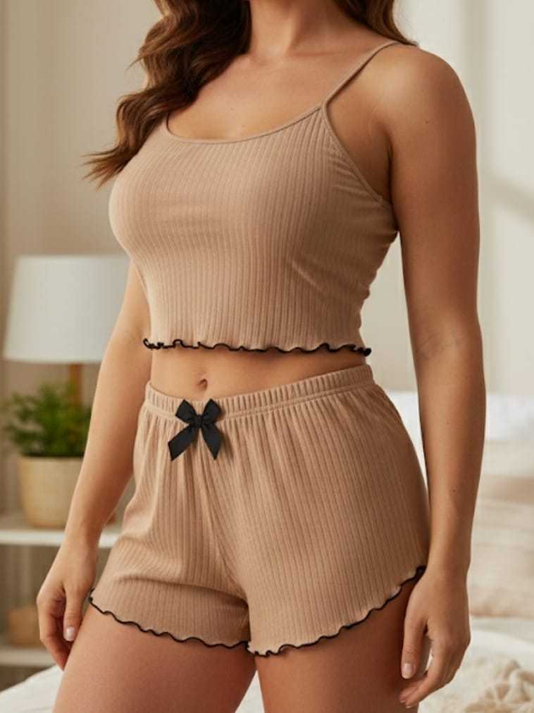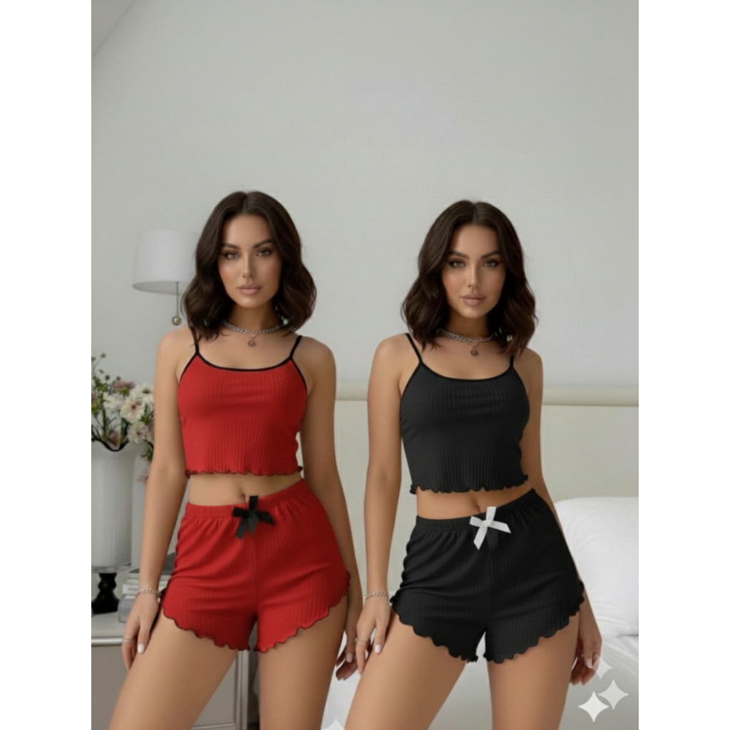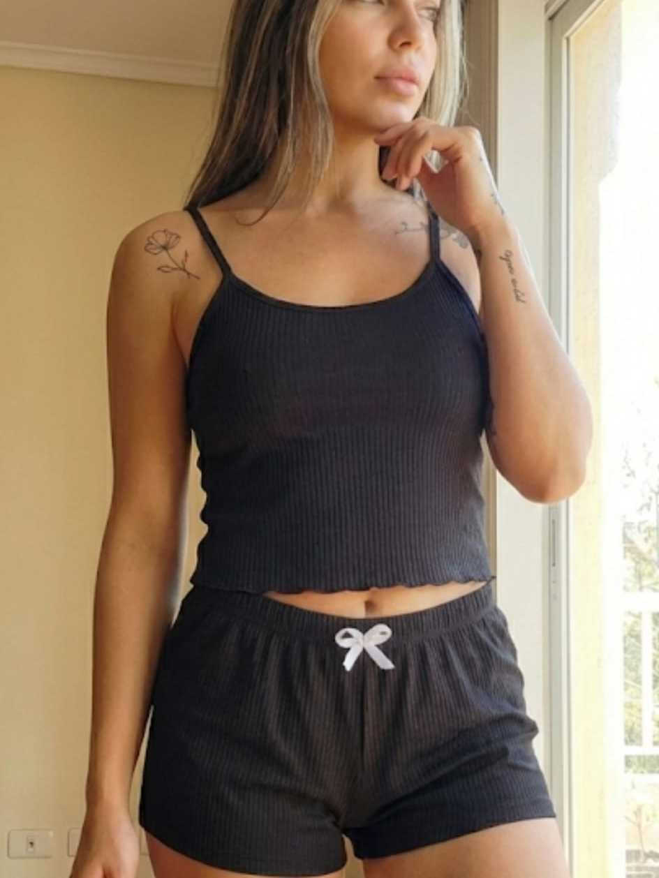 Baby Doll Curto de Verão Canelado Pijama Blogueirinha Confortável