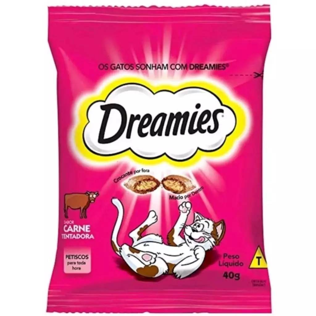 Kit Com 10 Unidades Petiscos Dreamies Para Gatos Adulto 40G Sabores Carne Frango Queijo Salmão
