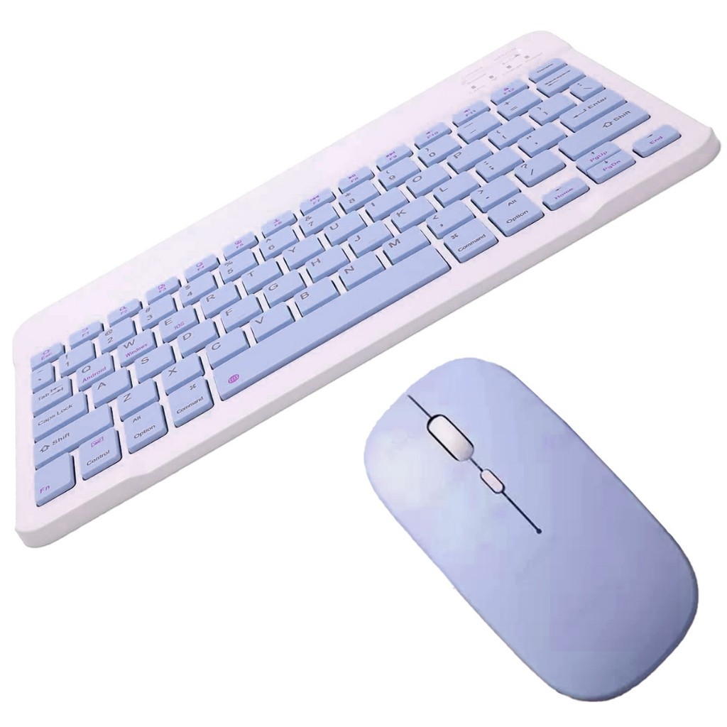 Kit de Teclado e Mouse Sem Fio Bluetooth Macaron com Design Moderno Destinado a PC iPad Tablet e Notebook