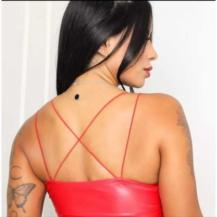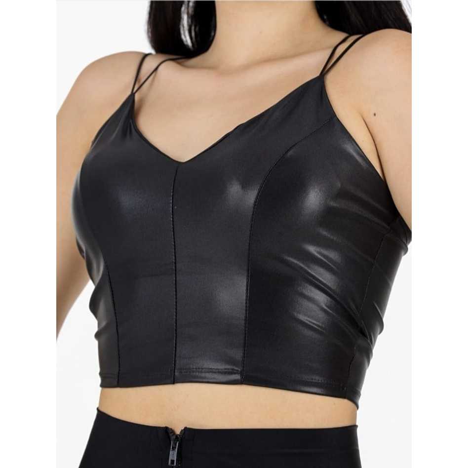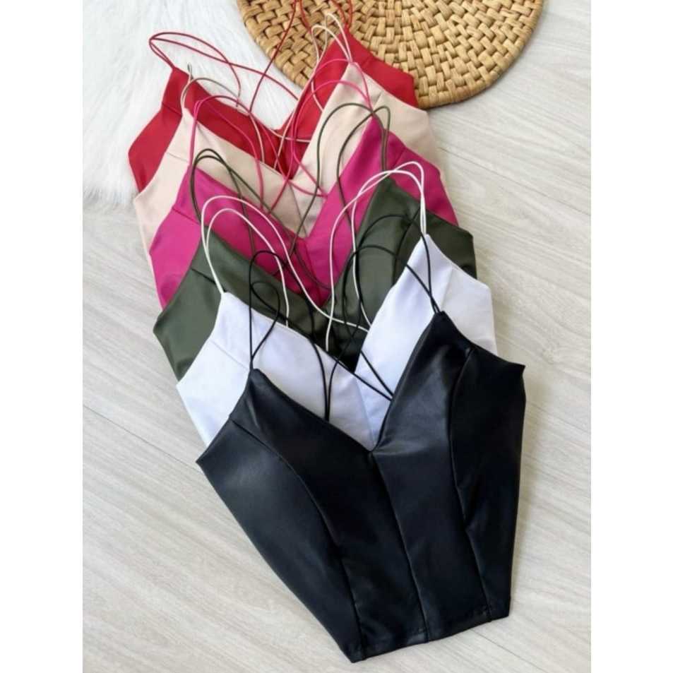 Cropped em Couro Cirré com Duas Alças e Detalhe Trançado nas Costas - Super Confortável