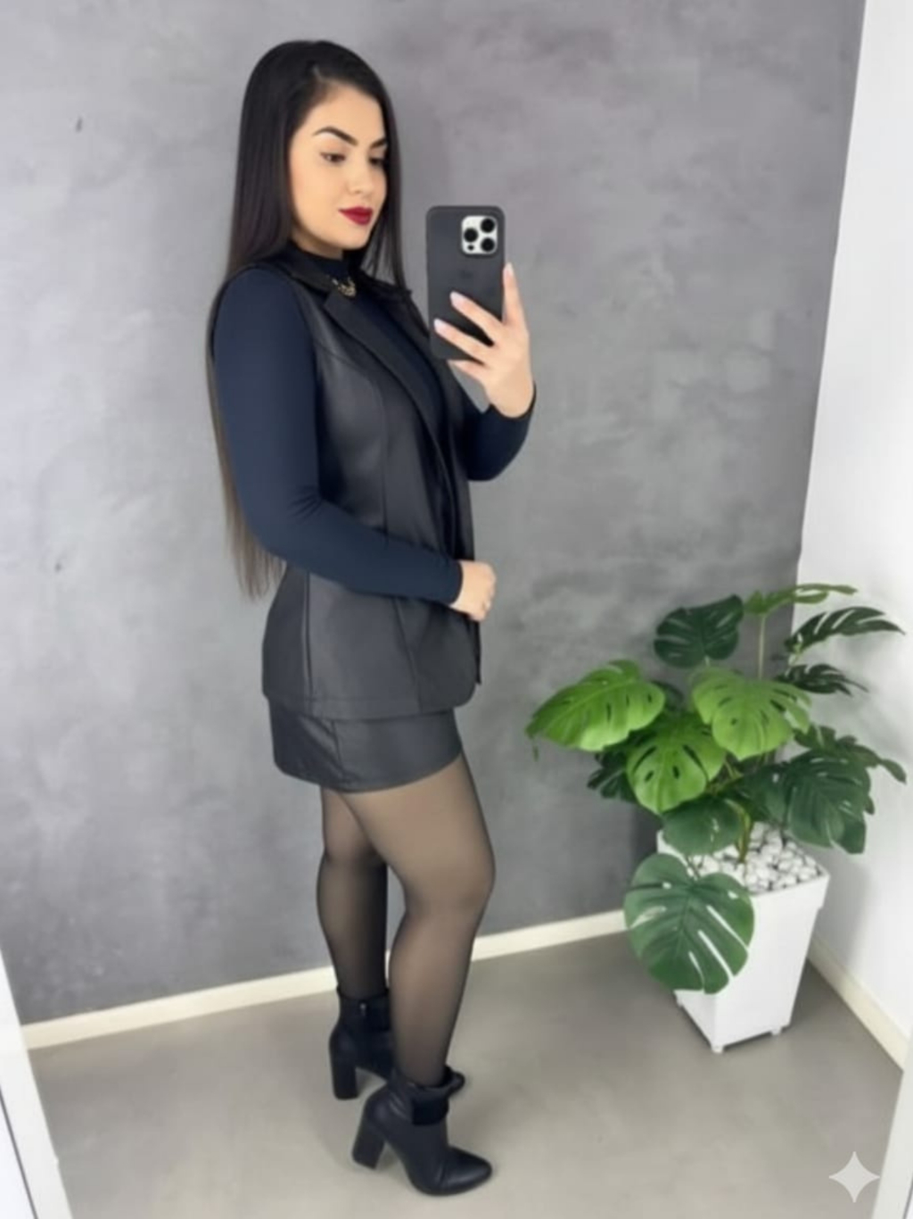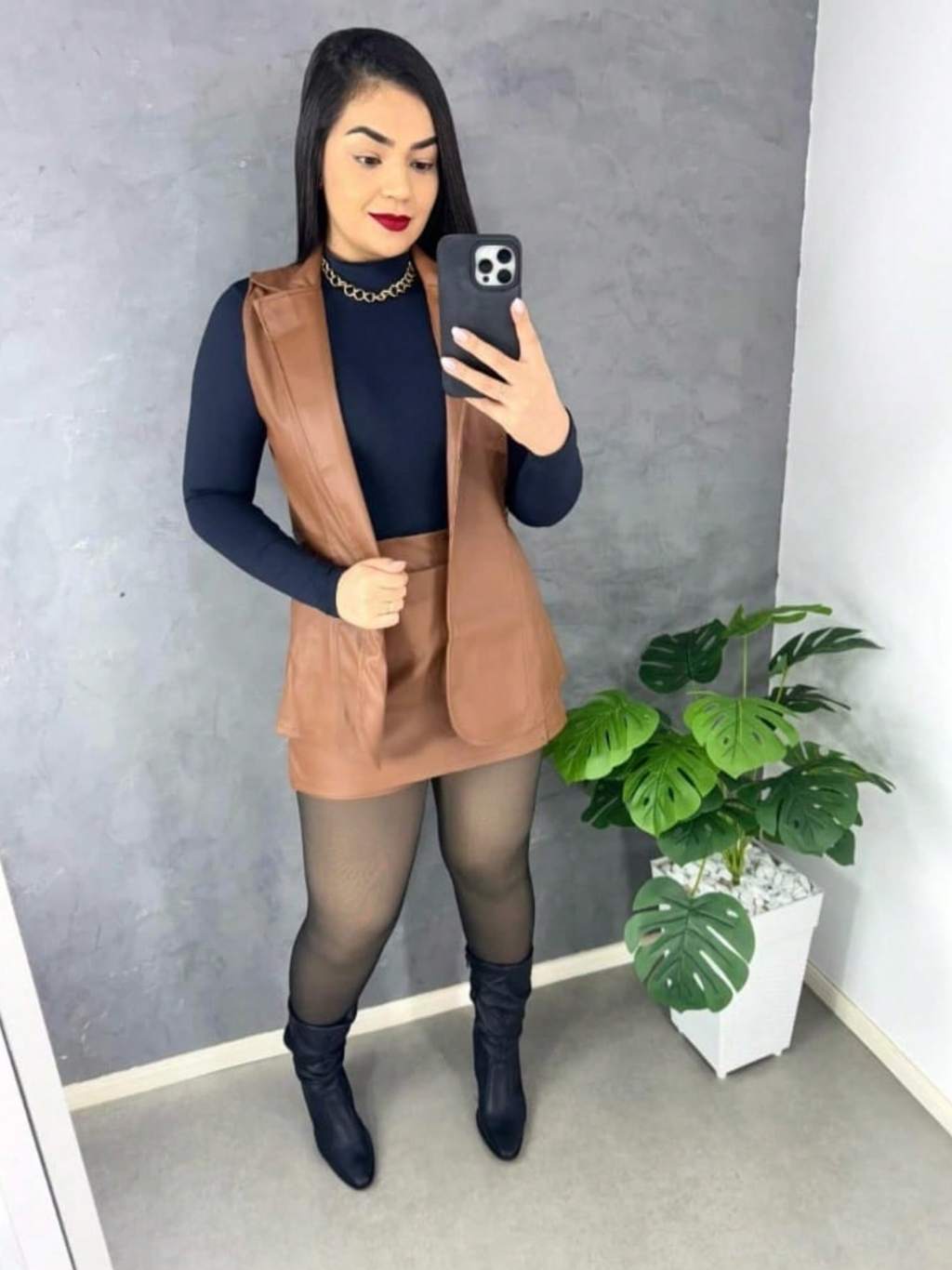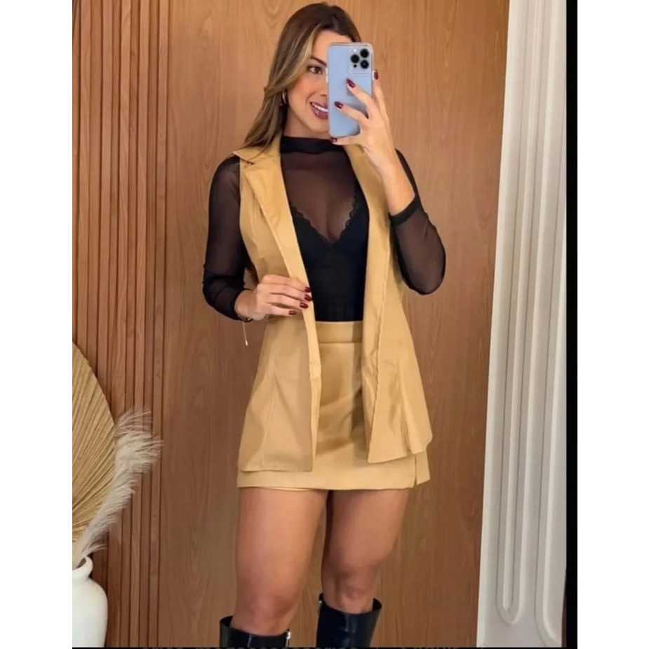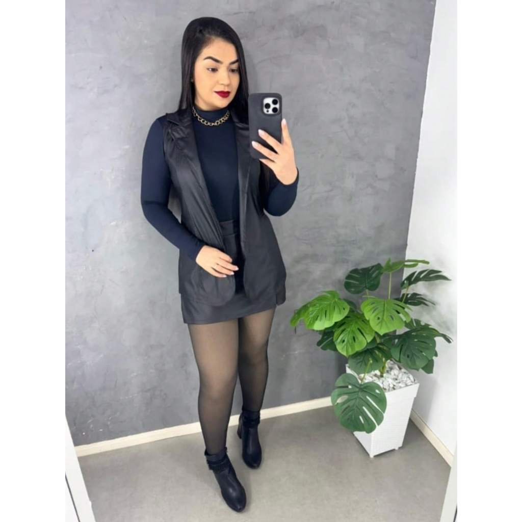 Conjunto Feminina Colete e Short Saia Tamanho M e G Couro Fake