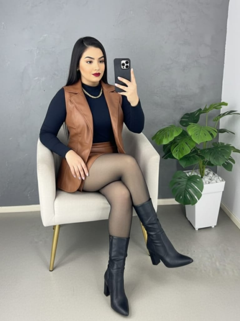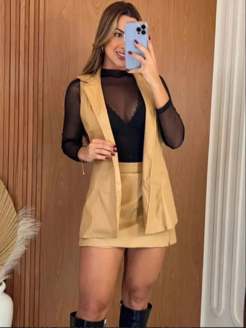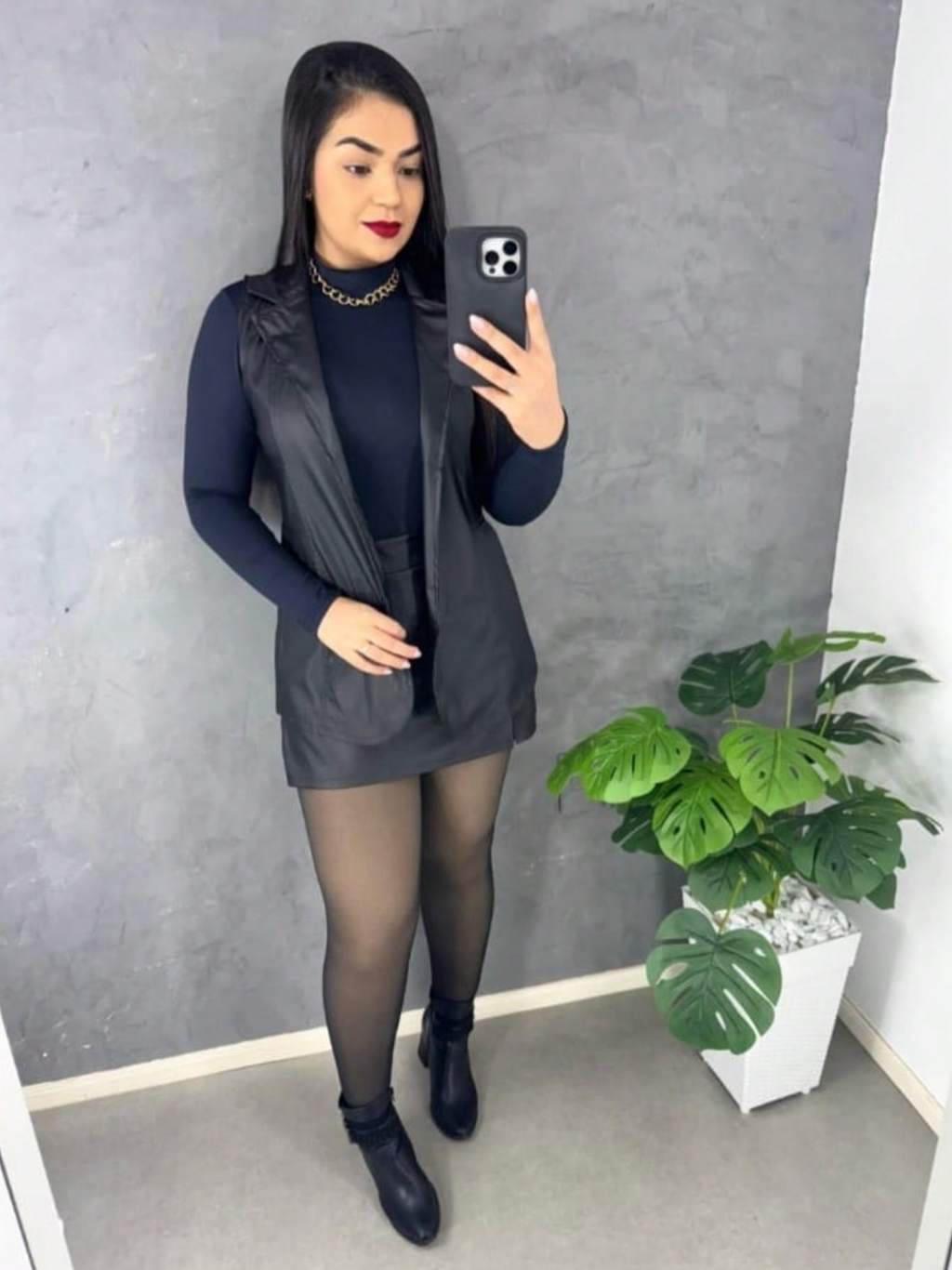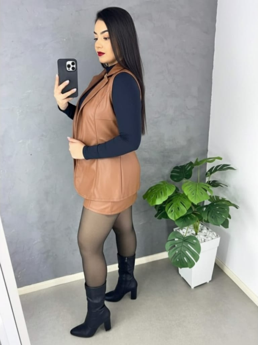 Conjunto Feminina Colete e Short Saia Tamanho M e G Couro Fake