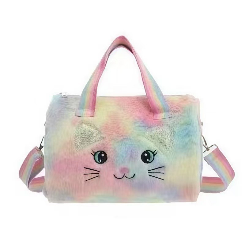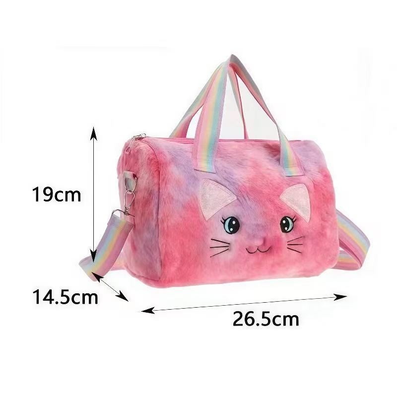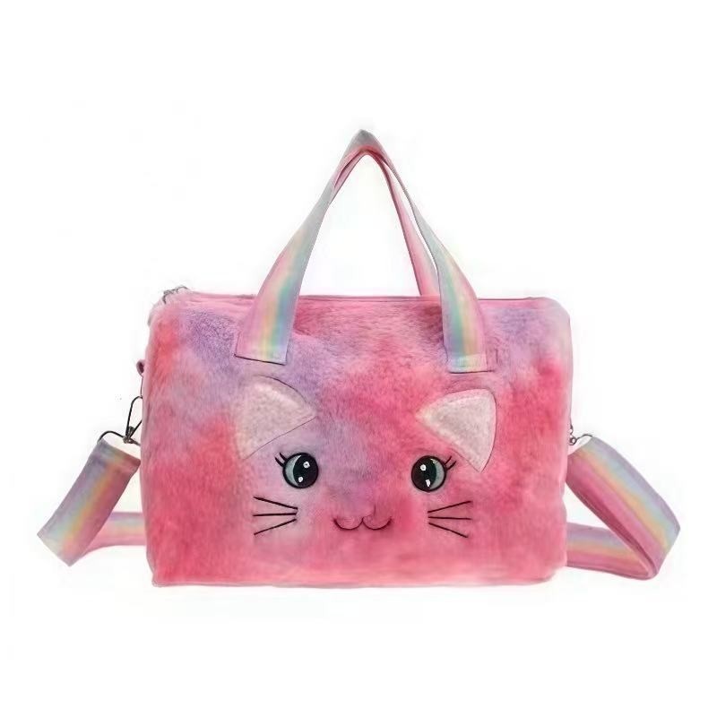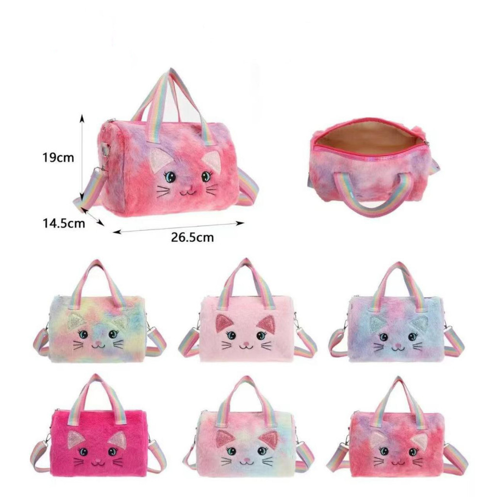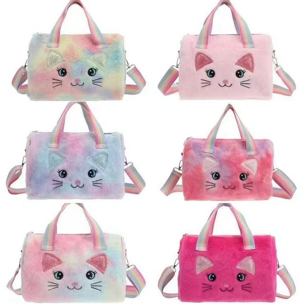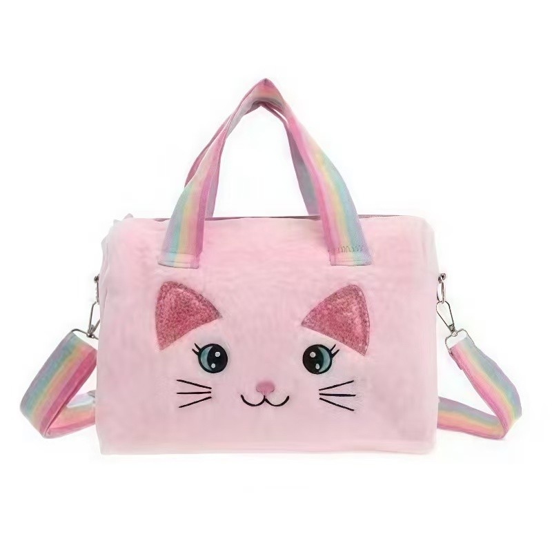 Bolsa Infantil de Pelúcia Feminina Gatinho Rosa e Colorida com Alça Ombro Meninas