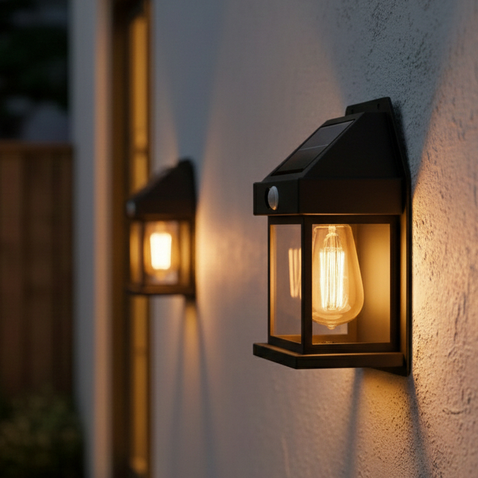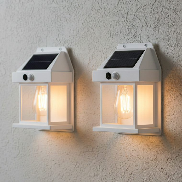kit 2 Arandela Luminaria Solar Externa para Quintal Jardim de Parede iluminação Led Sensor Movimento
