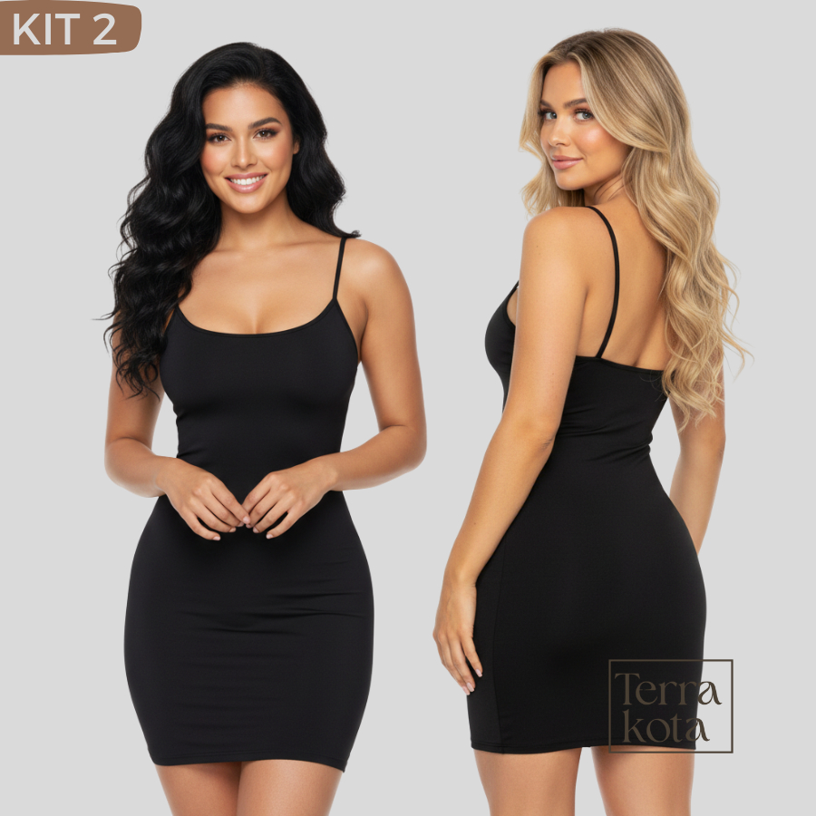 Kit 2 Vestido Anágua Tubinho Feminino Segunda Pele Combinete Feminino com Alça Fina Leve