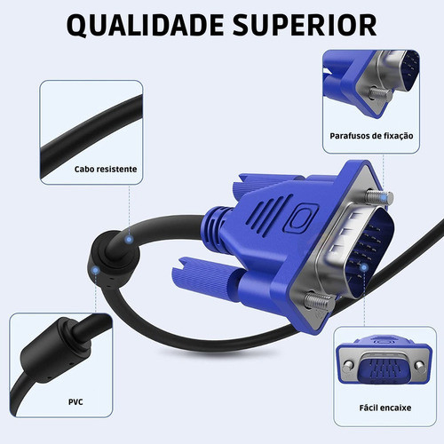 Cabo Vga Para Monitor Macho Lcd Pc Câmera e Projetor 1,8 Metros
