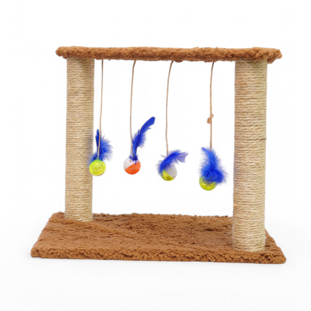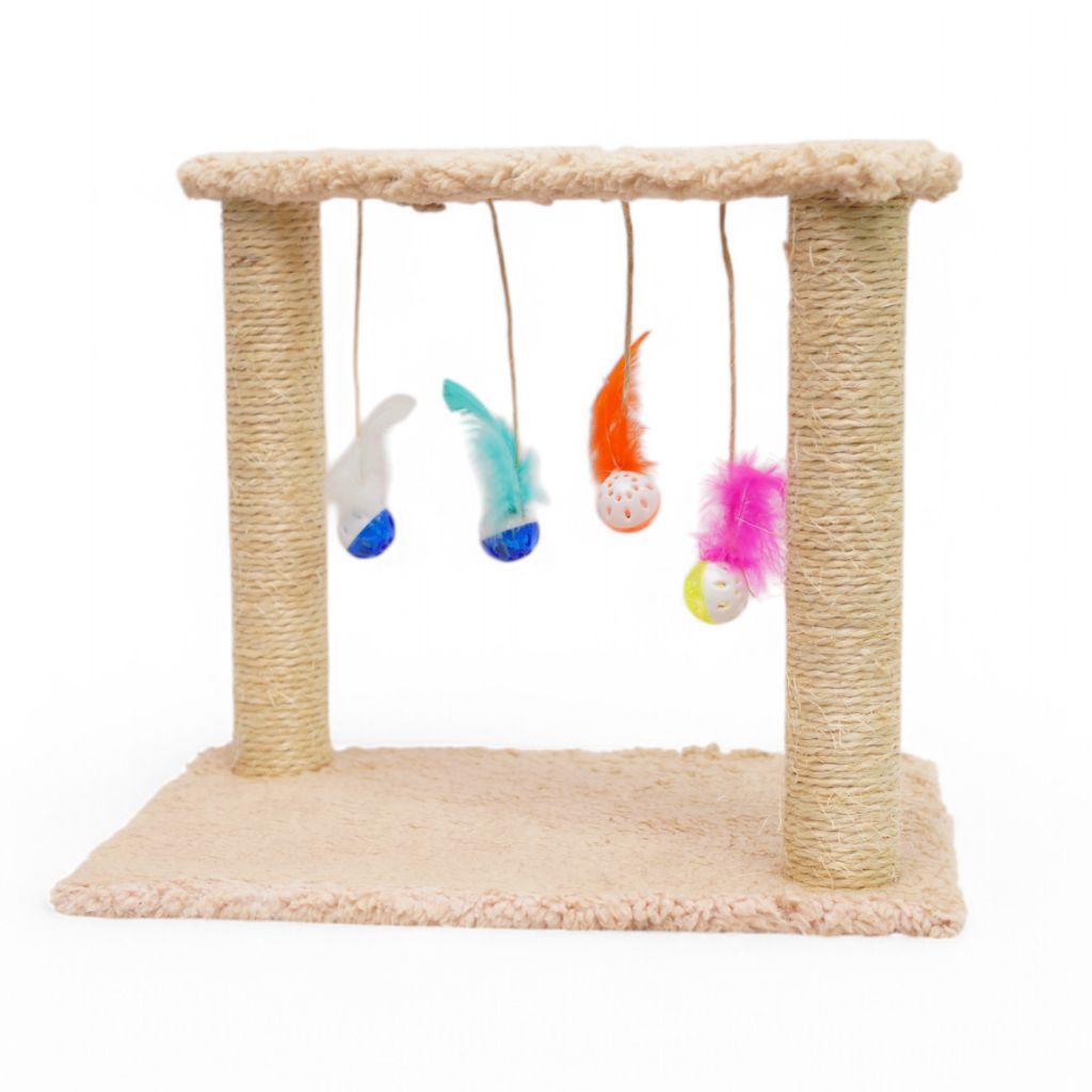 Arranhador para Gatos Interativo – Poste de Sisal + Brinquedos Suspensos
