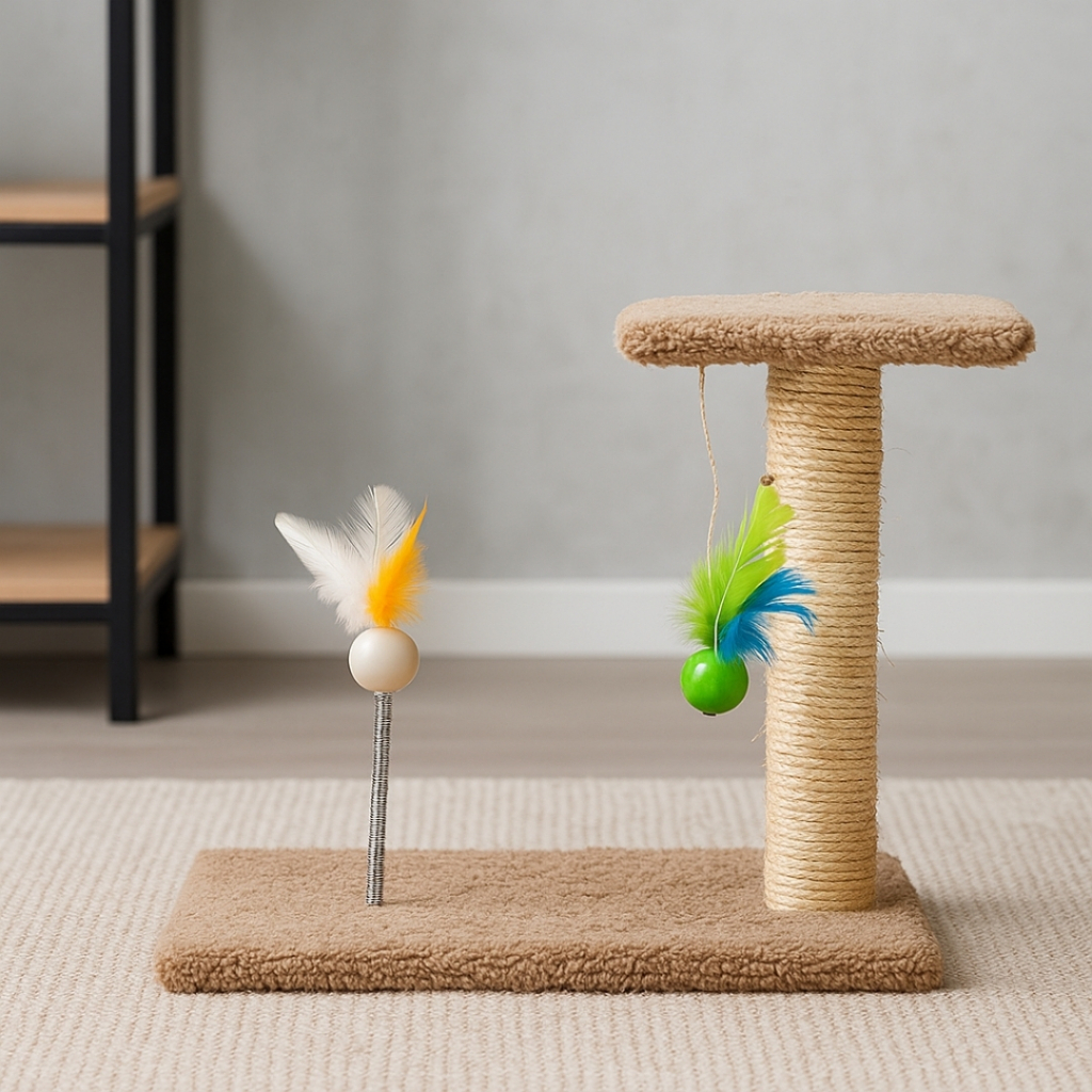 Arranhador Para Gatos Poste Sisal com Pena e Brinquedo Interativo - Mola