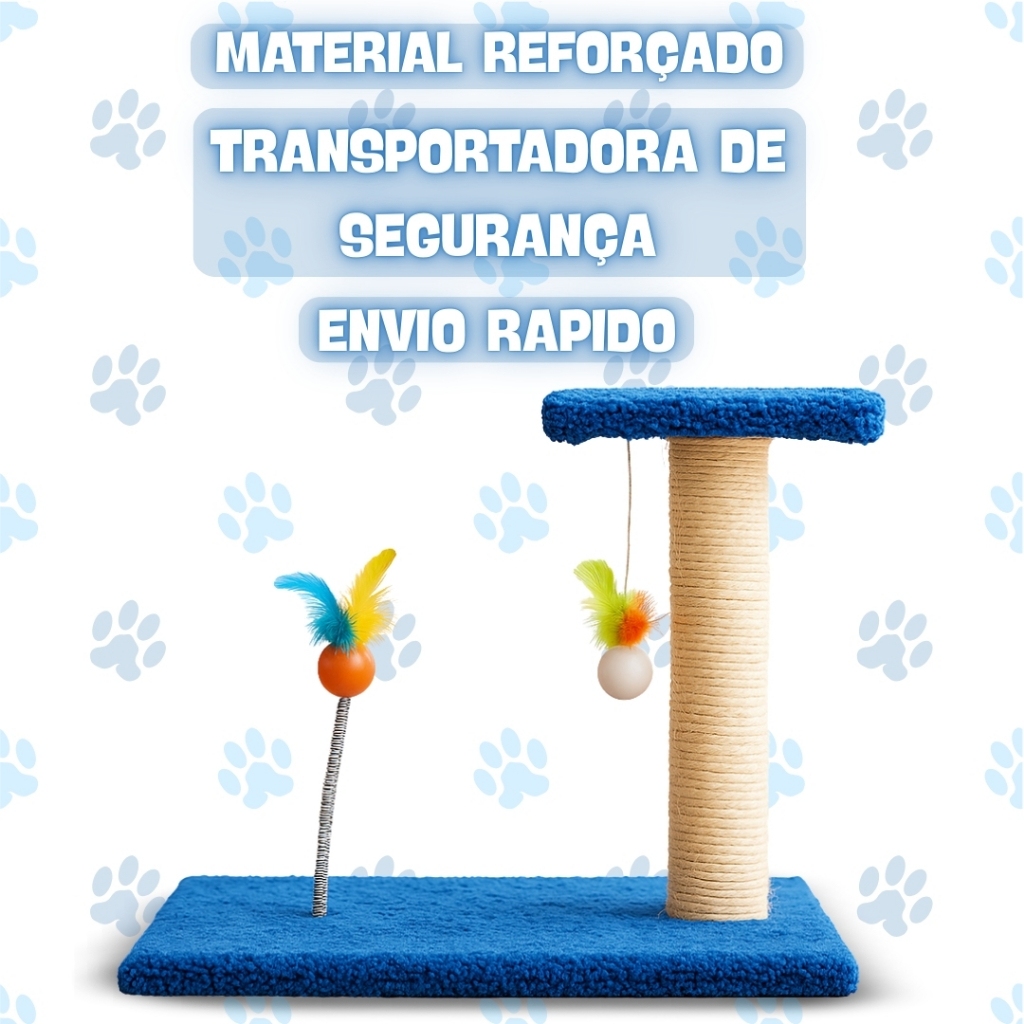 Arranhador Para Gatos com Poste, Bolinha, Pena e Base Estável - Mola