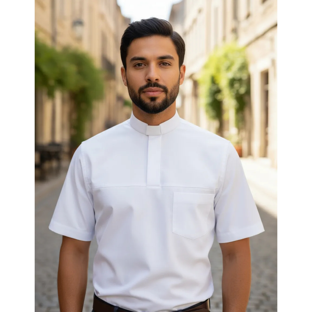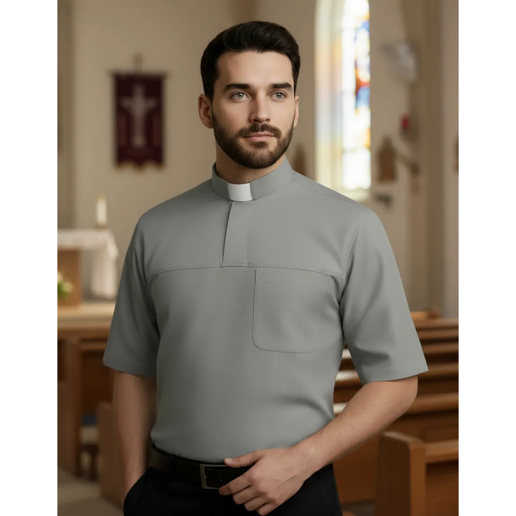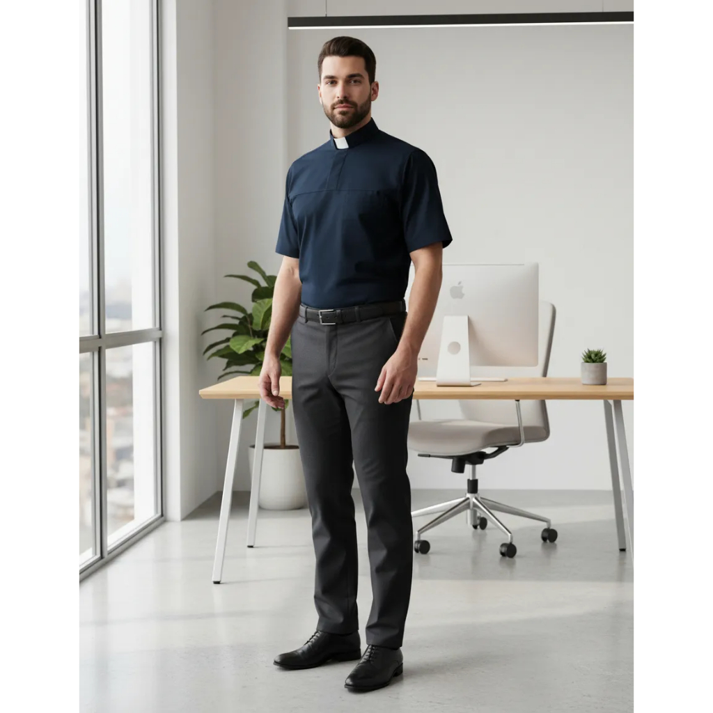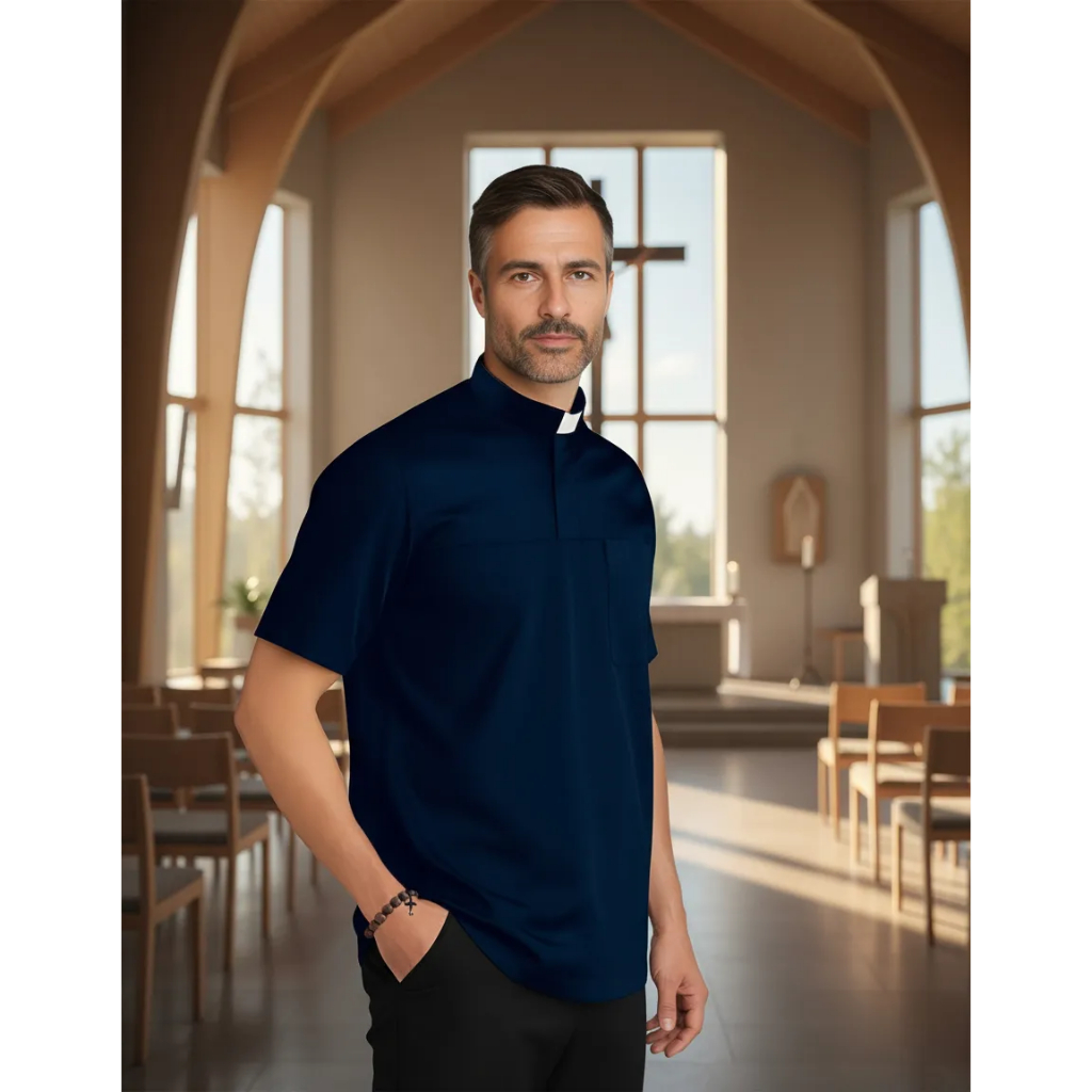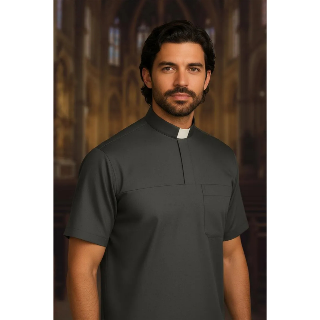 Camisa Clerical Estilo Polo Curta Sem Palheta Ultra Elastano