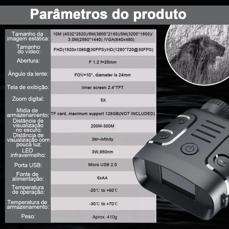 Binóculo Visão Noturna Para Caça Infravermelho Night-Visions Dispositivo Binocular, 5x Binocular, Alcance 300 Metros