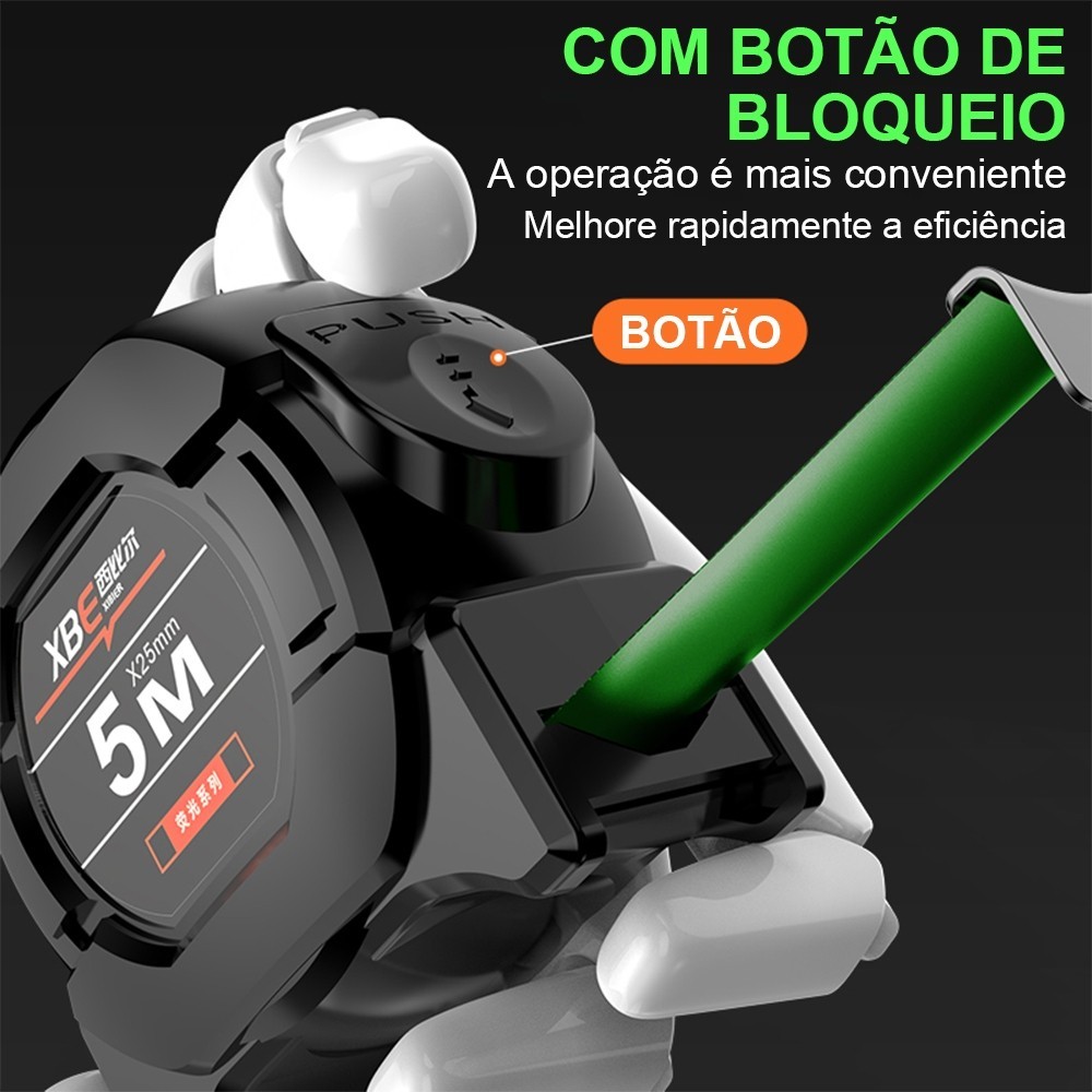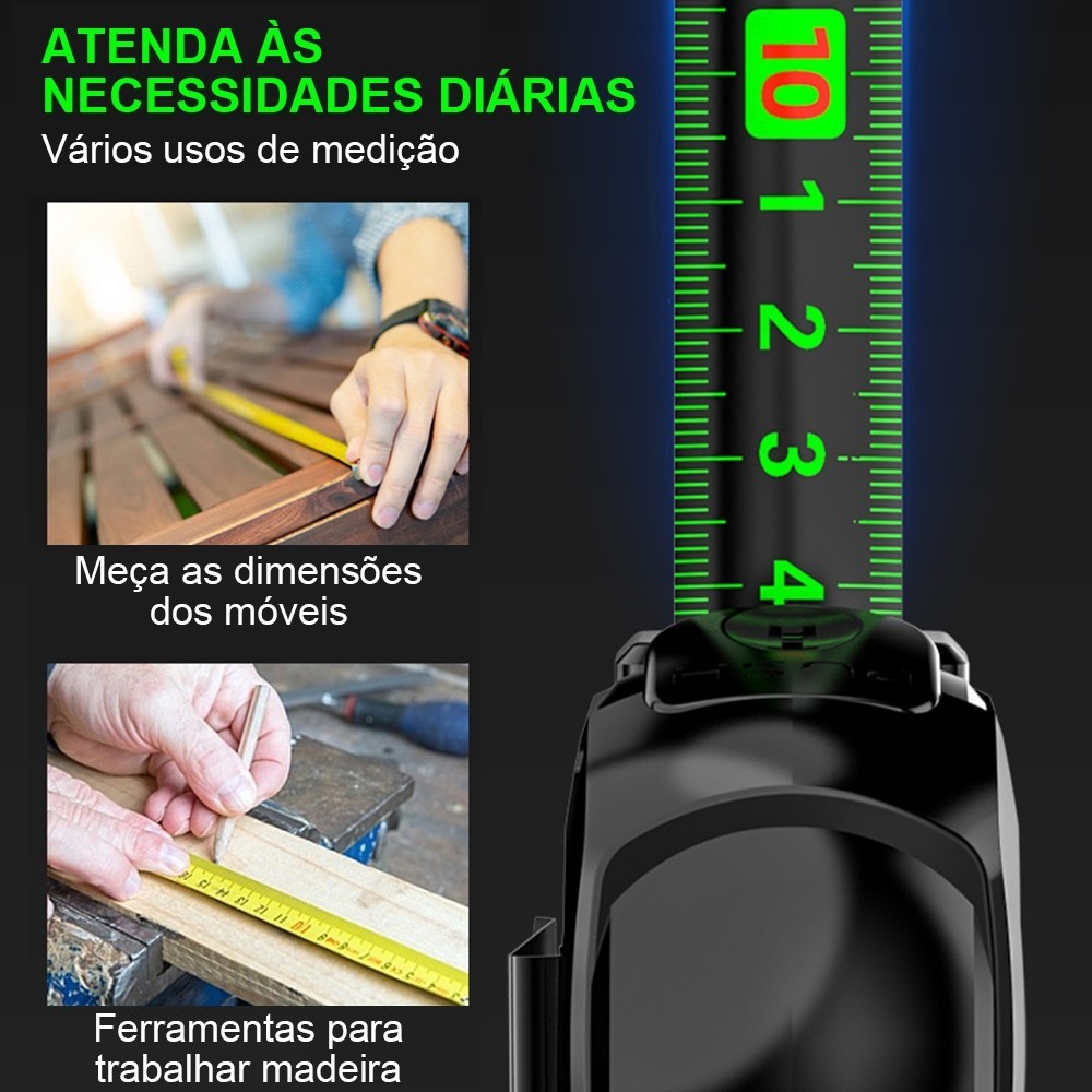 10M Fita Métrica De Aço carbono De Alta Precisão trena Profissional Fluorescente Trava