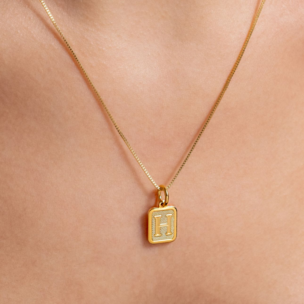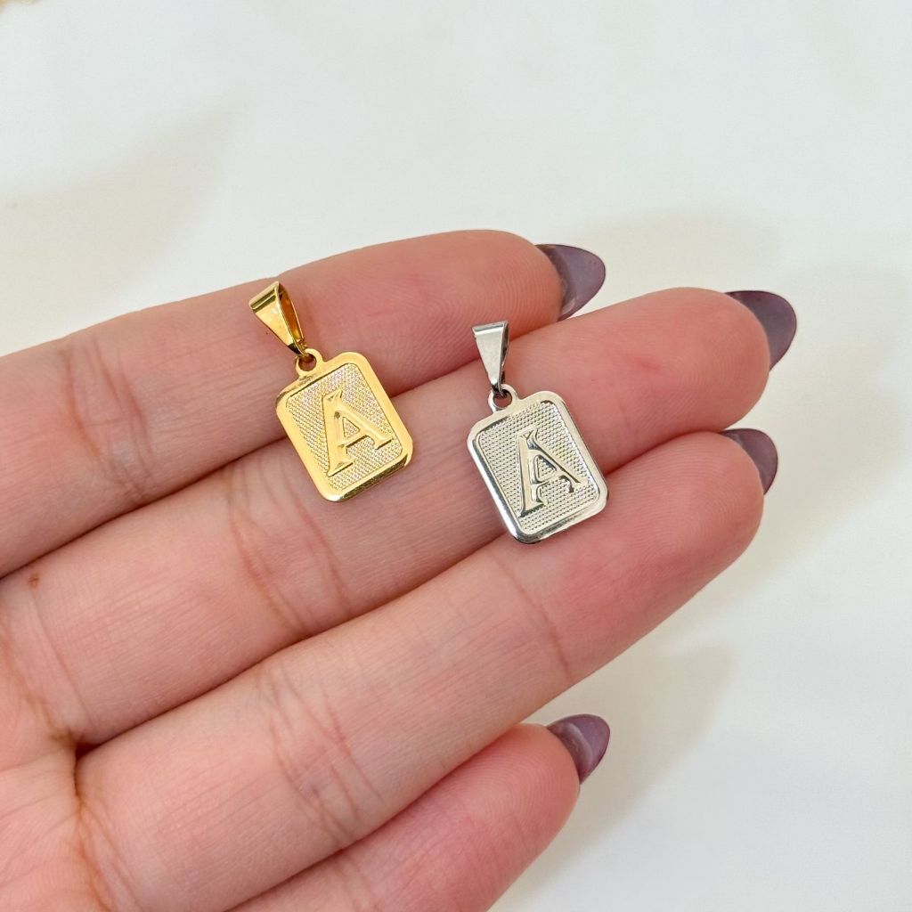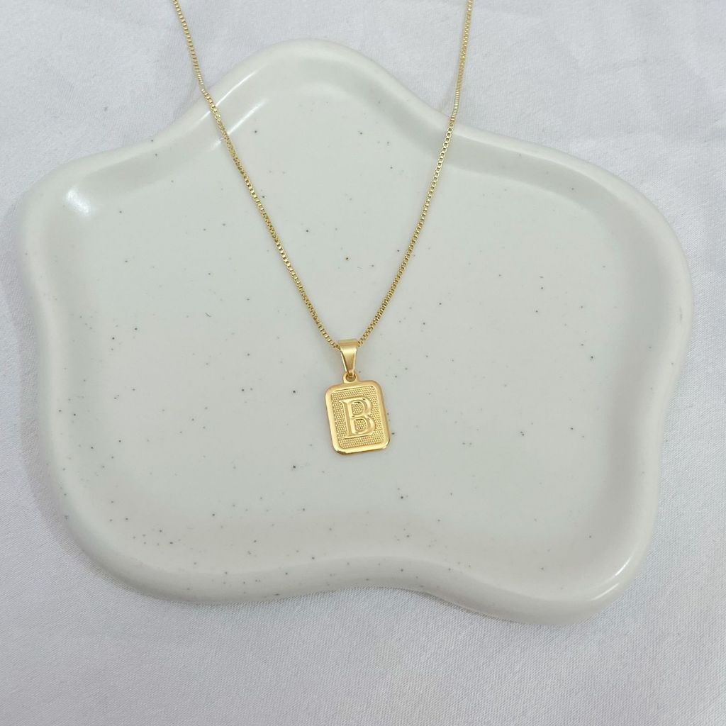 [ SEMI JOIA ] Pingente Letra Inicial Placa Delicada Banhado em Ouro 18k Alto Padrão Acessórios Femininos