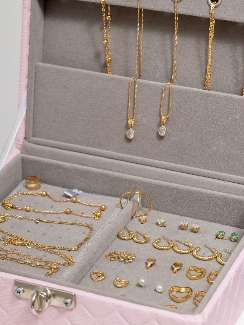 Kit Semi Joias de Luxo 60 Peças Revenda Atacado (Não vem Maleta) Banhado em Ouro 18k Alto Padrão