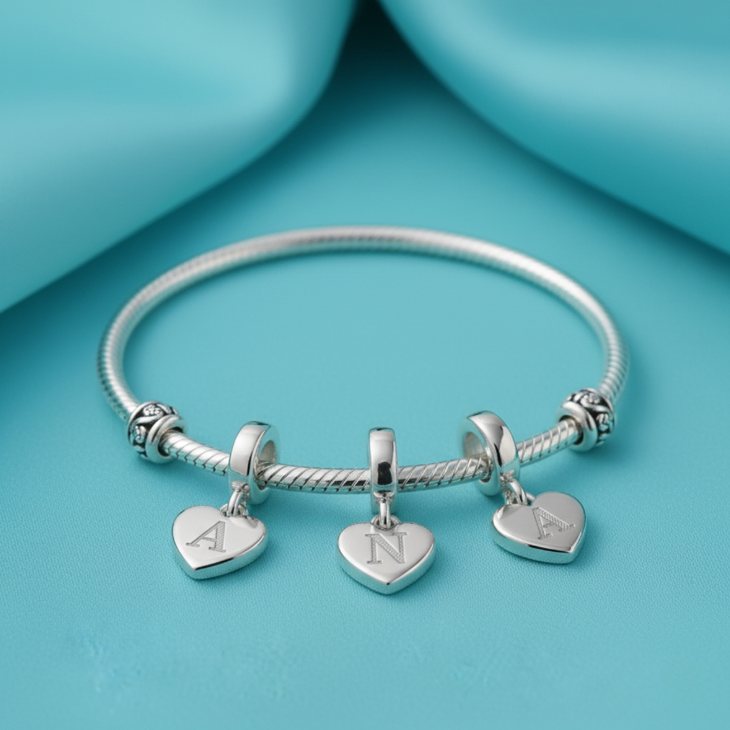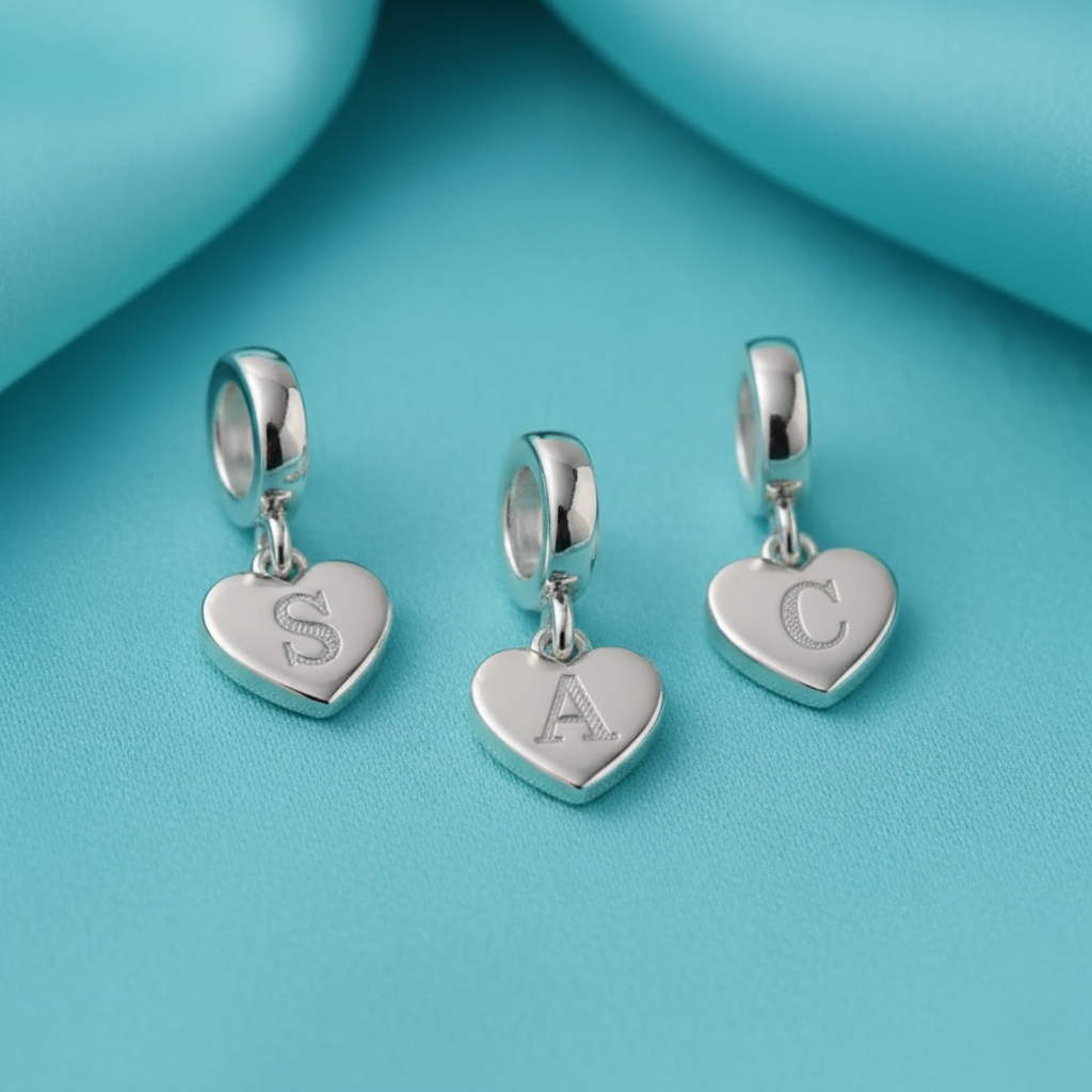 [ SEMI JOIA ] Berloque Pingente Para Pulseiras Inicial Letra Coração Banhado Prata 925