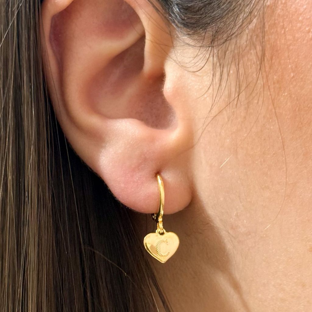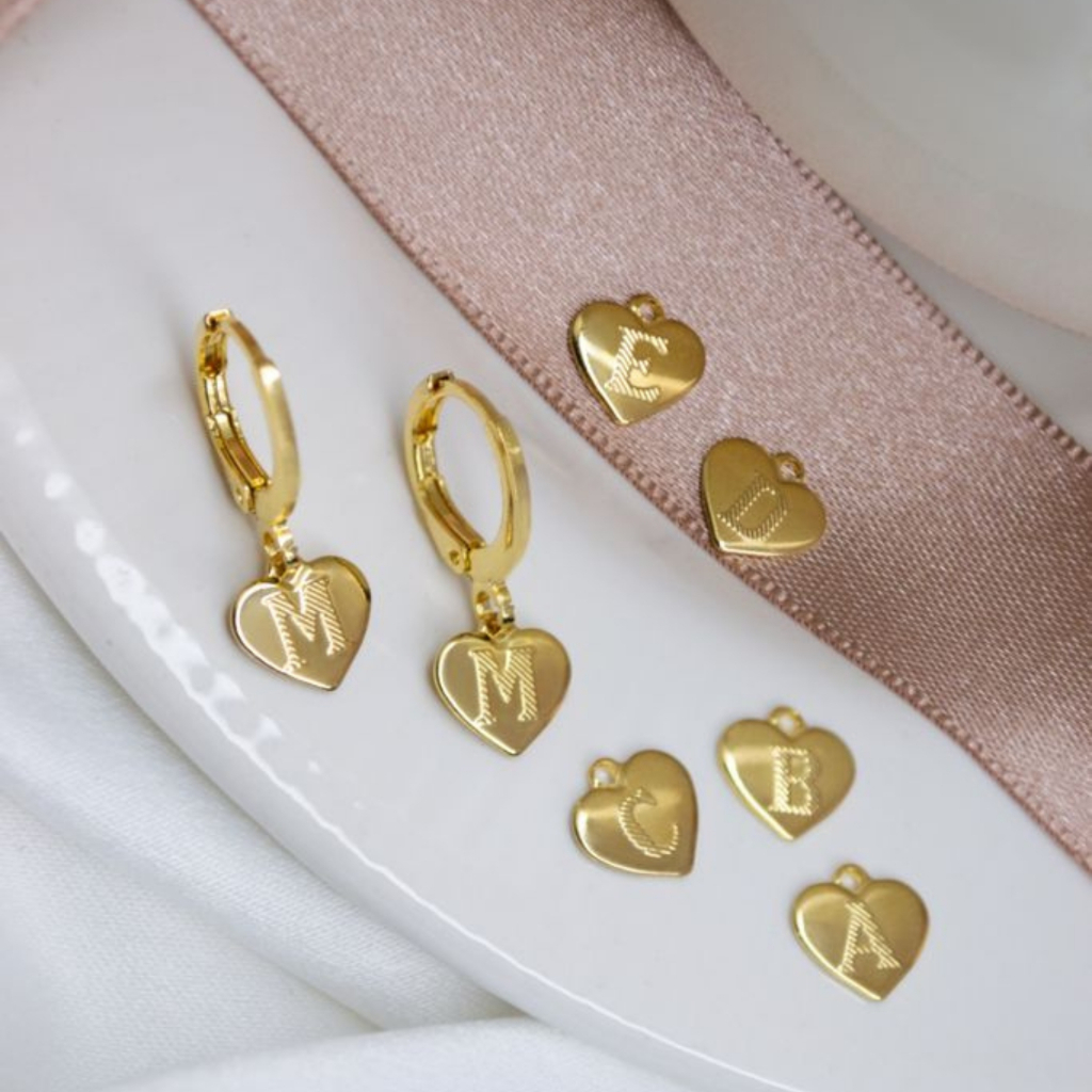 [ SEMI JOIA ] Brincos de Argolas Inicial Letra Coração Feminina Banho Ouro 18k Anti Alérgico Acessórios Femininos