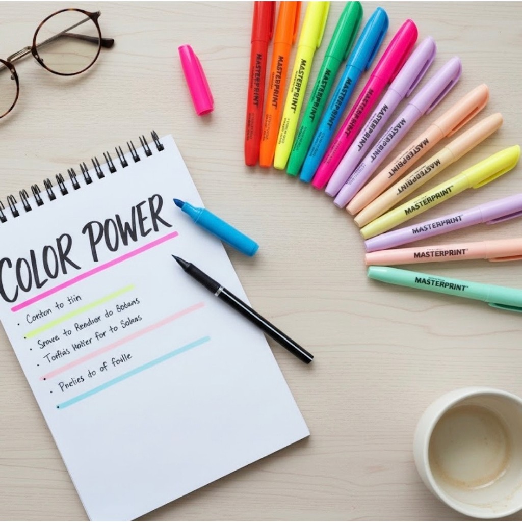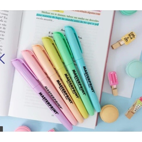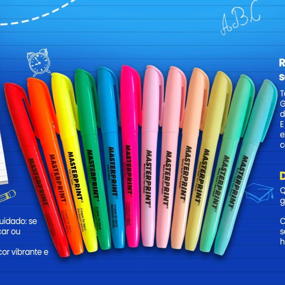 Kit 12 Cores Marca Texto Masterprint 6 Tom neon + 6 Tom Pastel