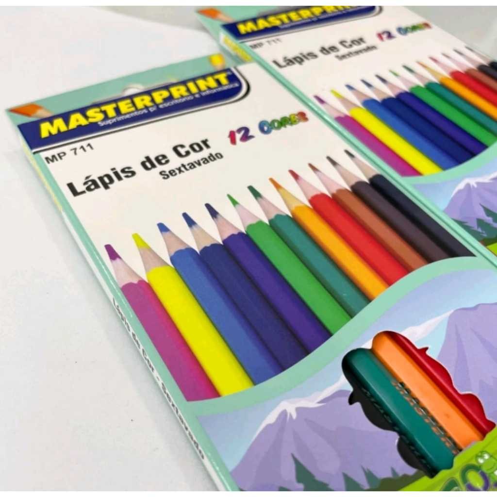 2 Caixa Lápis de Cor 24 Lápis Sextavado 12 Cores Escolar Masterprint