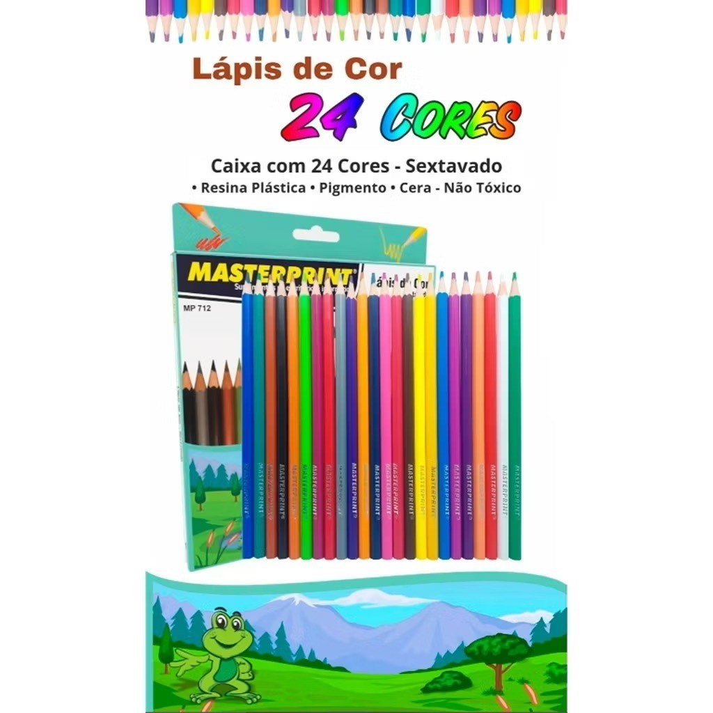 Lápis de Cor 24 Cores Resistente Sextavado Escolar Masterprint