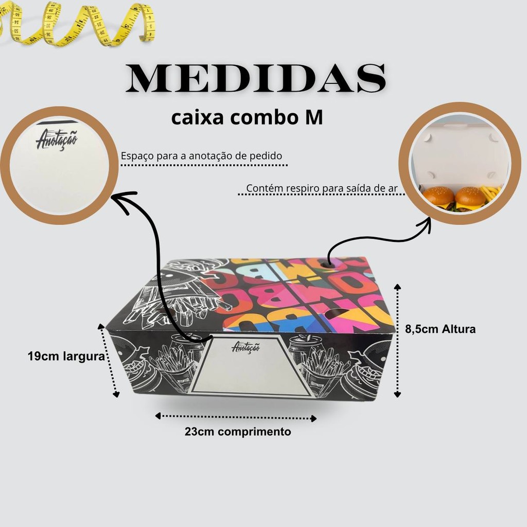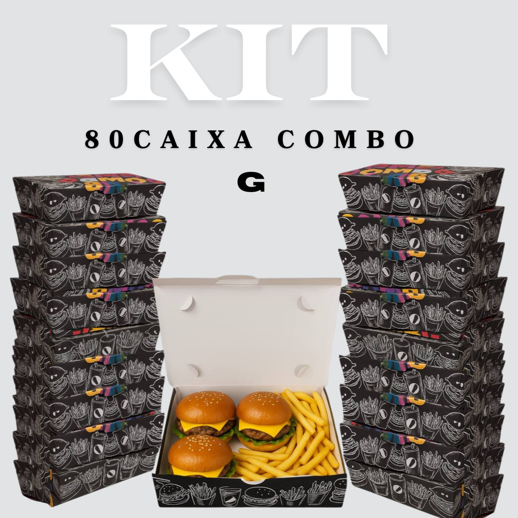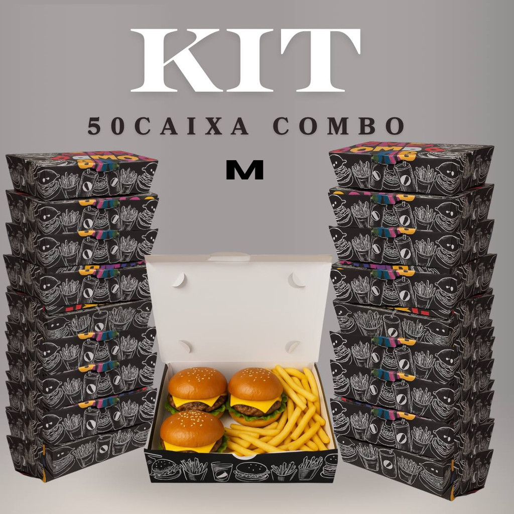 Kit 50 80 100 Caixa para Hamburguer Combo Box Batata Artesanal Delivery Embalagem Personalizada