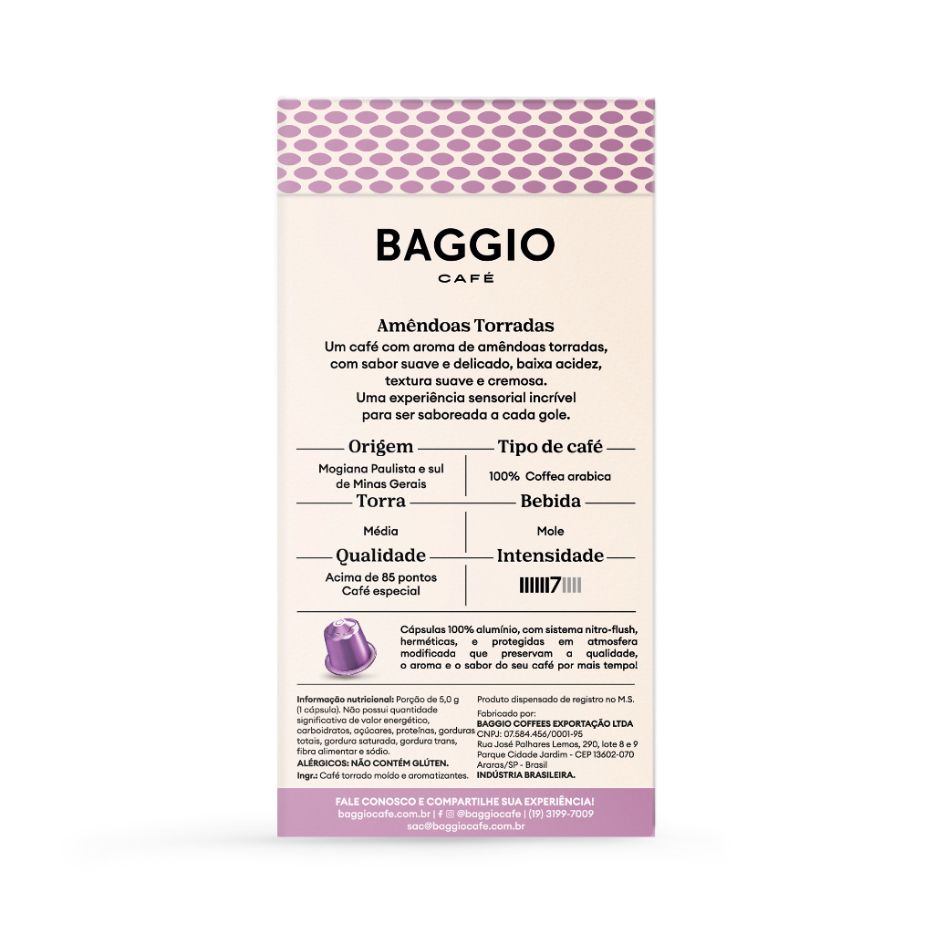 Baggio Café Cápsulas De Café Aroma Amêndoas Torradas Compatível Com Nespresso Contém 10 Cápsulas