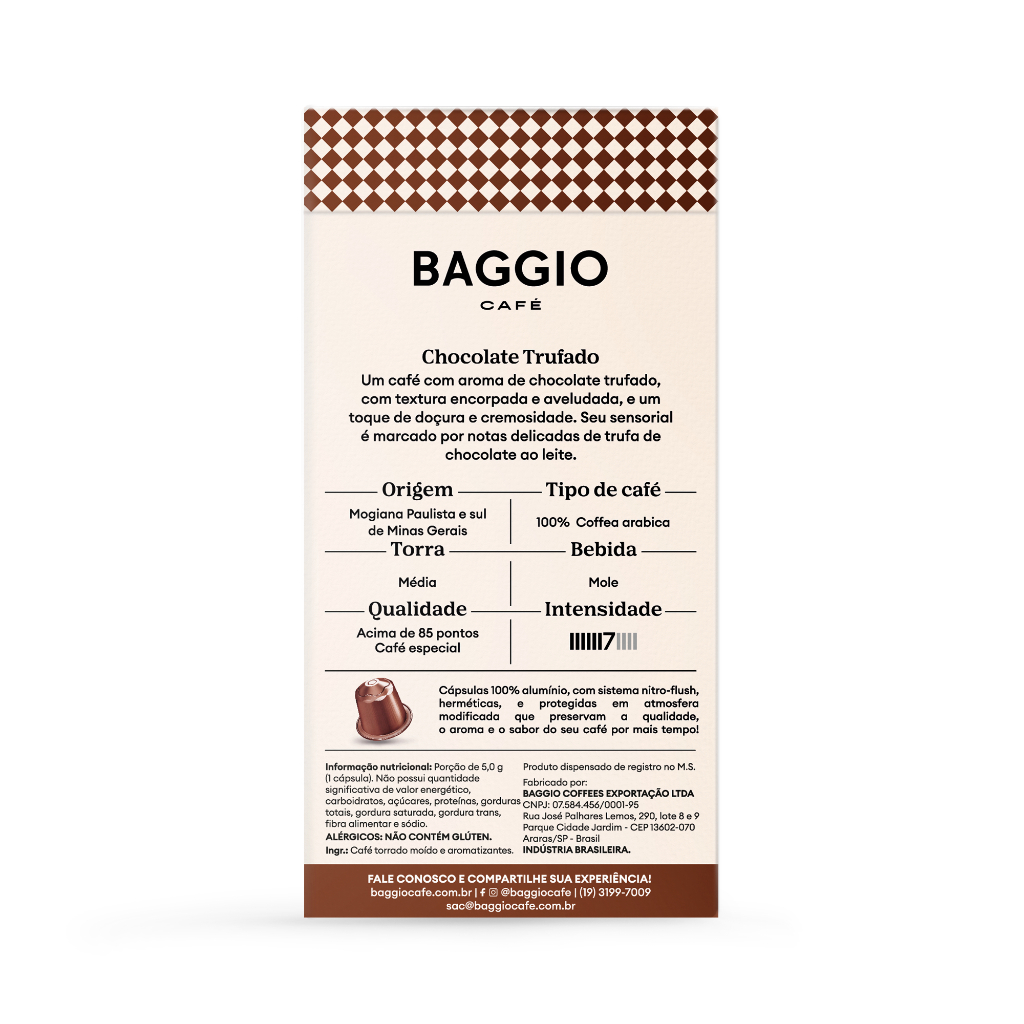 Baggio Café Cápsulas De Café Aroma Chocolate Trufado Compatível Com Nespresso Contém 10 Cápsulas