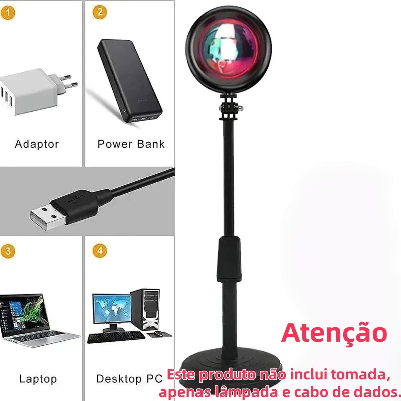 Lâmpada Pôr do Sol com Controle Remoto Luz Noturna USB 16 Cores Ajustáveis para Decoração de Quarto