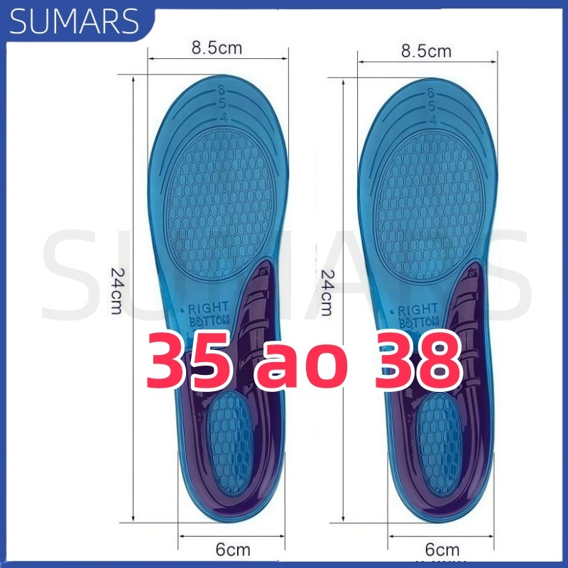 Par Palmilha Ortopédica Gel Silicone Recortável Anti Impacto Alívio para Fascite Plantar Esporão Calcâneo e Dores