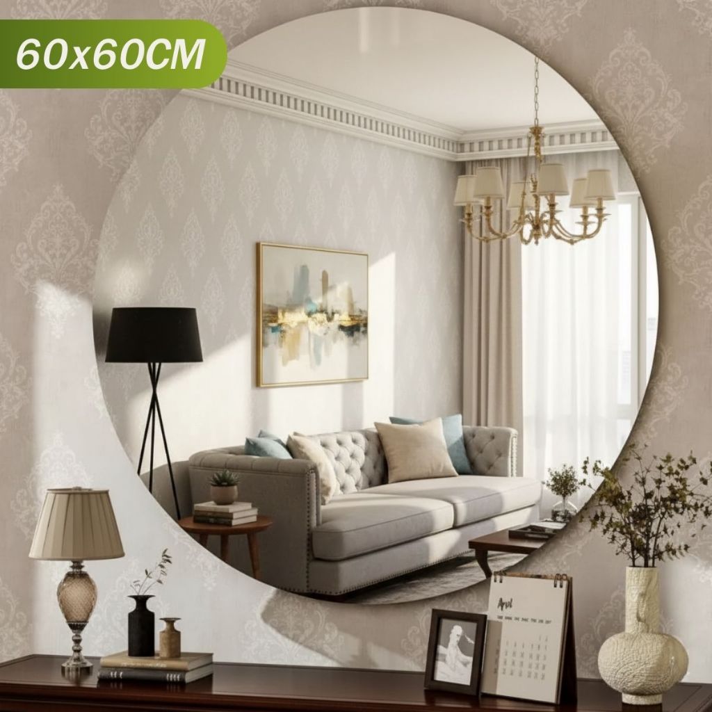 Espelho De Parede Redondo De vidro 60 X 60 CM Moderno Lapidado SALA ESCRITORIO HALL QUARTO