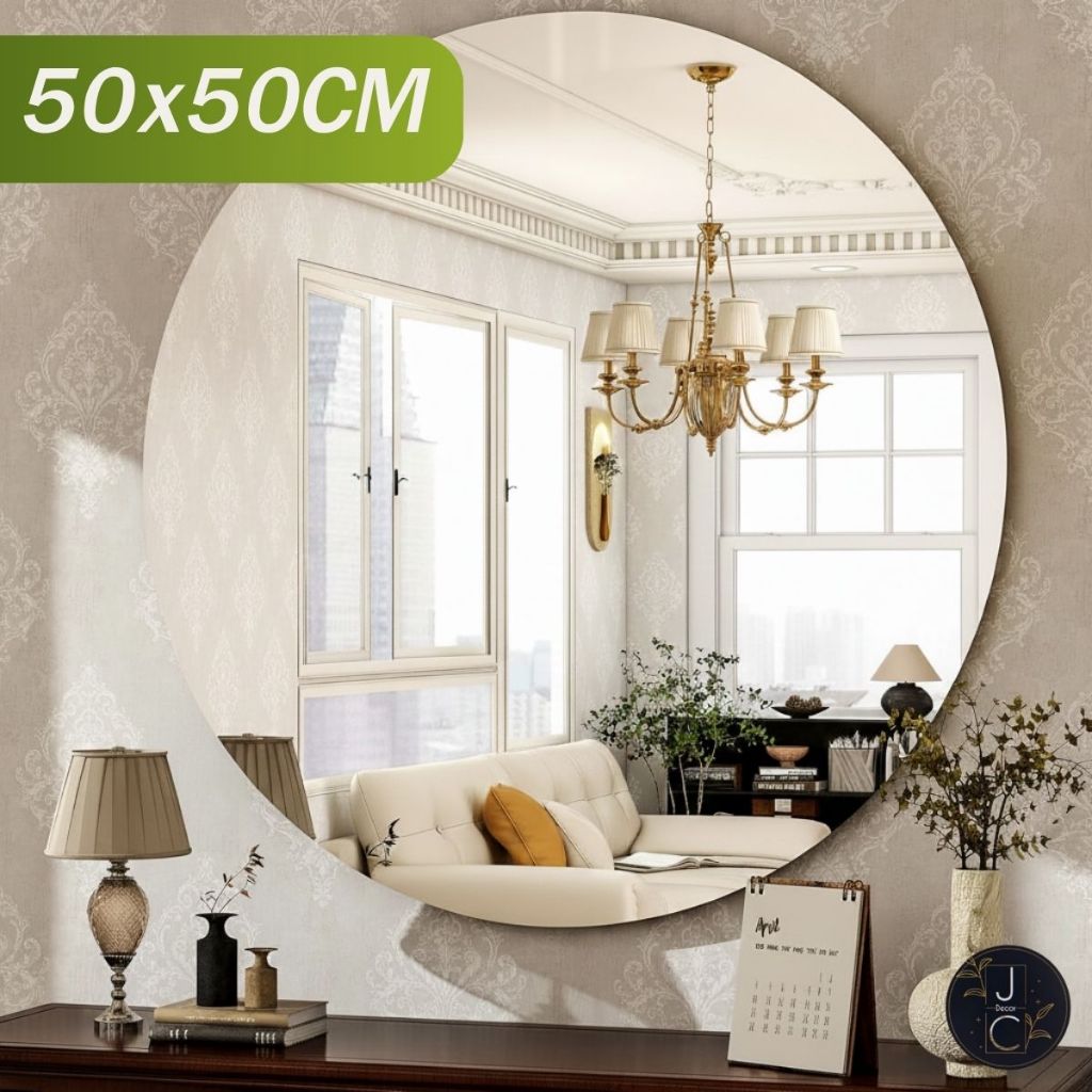 Espelho Redondo Lapidado 60x60cm Parede Sala Escritório Quarto Banheiro Lapidado