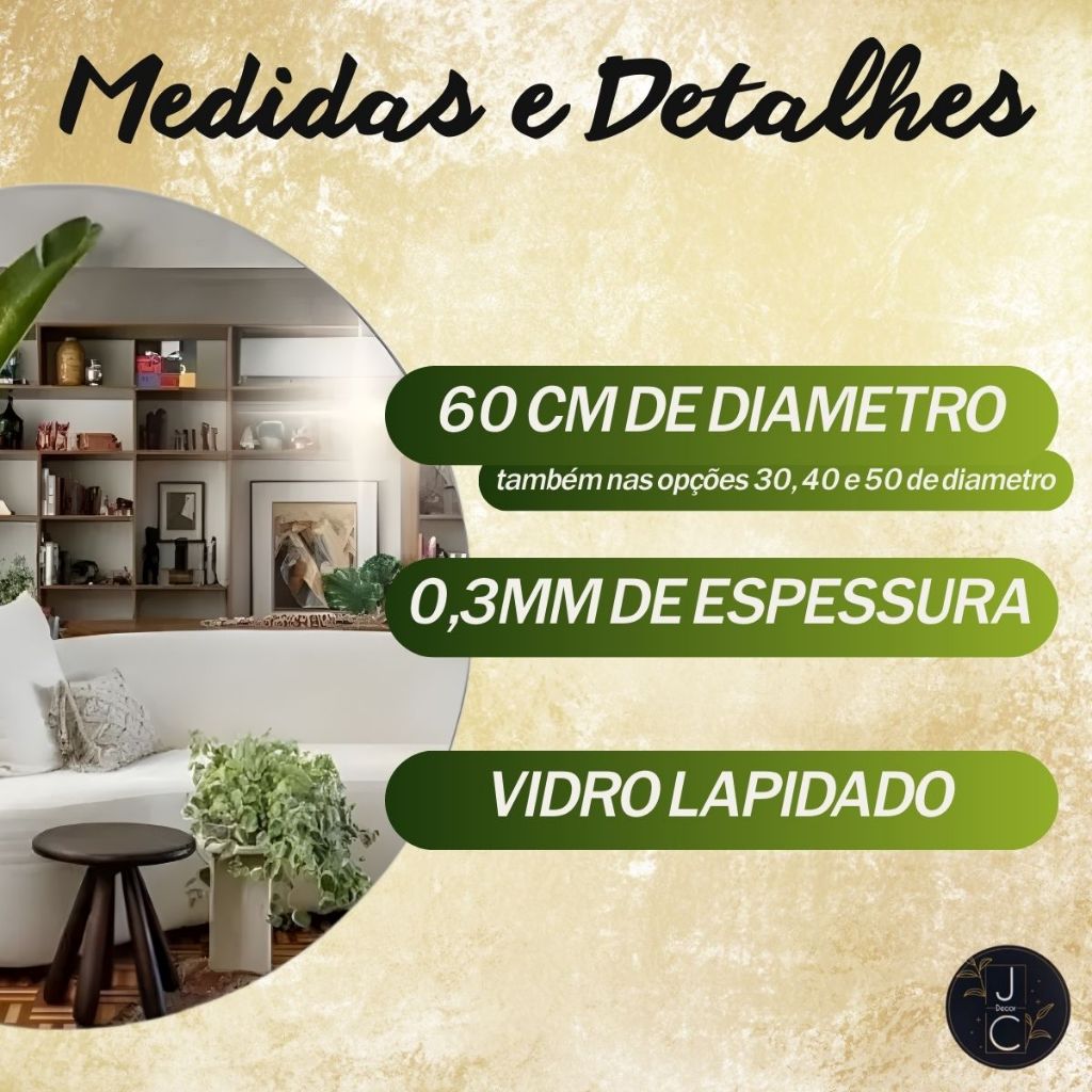 Espelho Redondo Decoração Sala Quarto Banheiro Moderno Lapidado