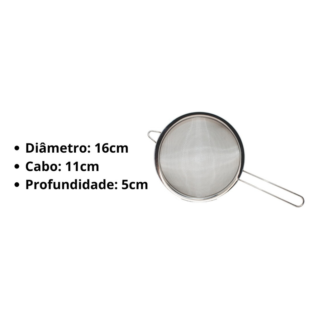 Peneira 100% Aço Inox Kit C/3 Pç (10-16-20cm)