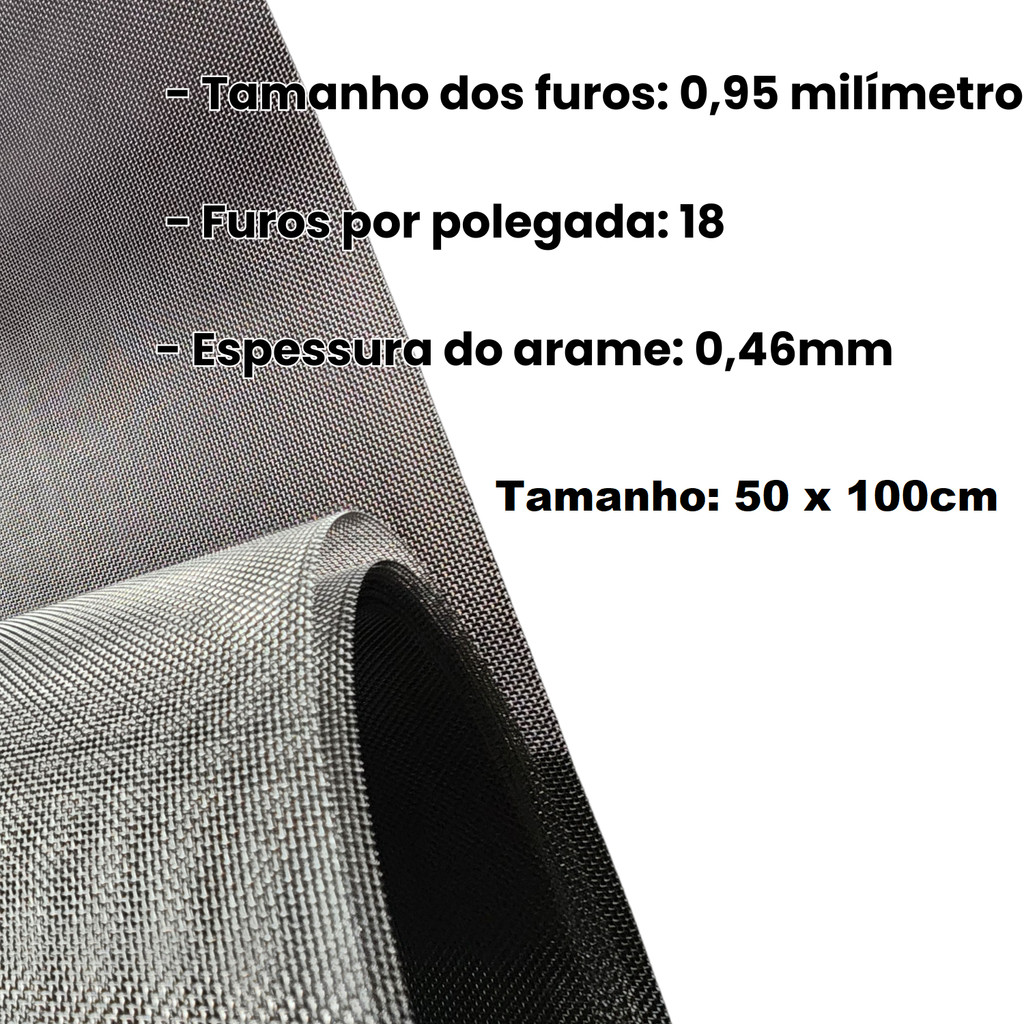 Tela Aço Inox 304 Malha 18 fio 26 (0,95mm) 50 x 100cm