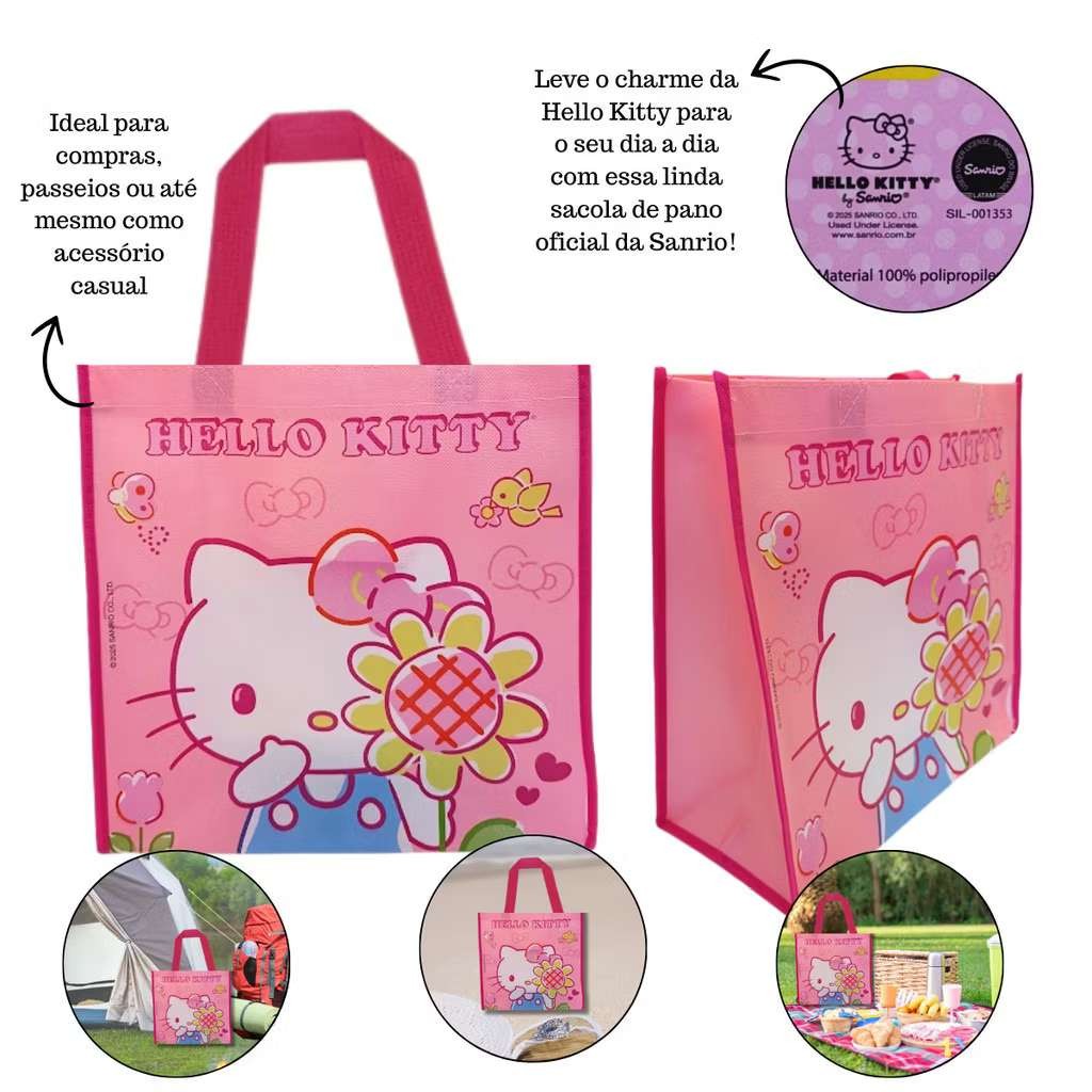 Sacola Hello Kitty Rosa | Ecobag 30x30x13cm | 3 Estampas Disponíveis