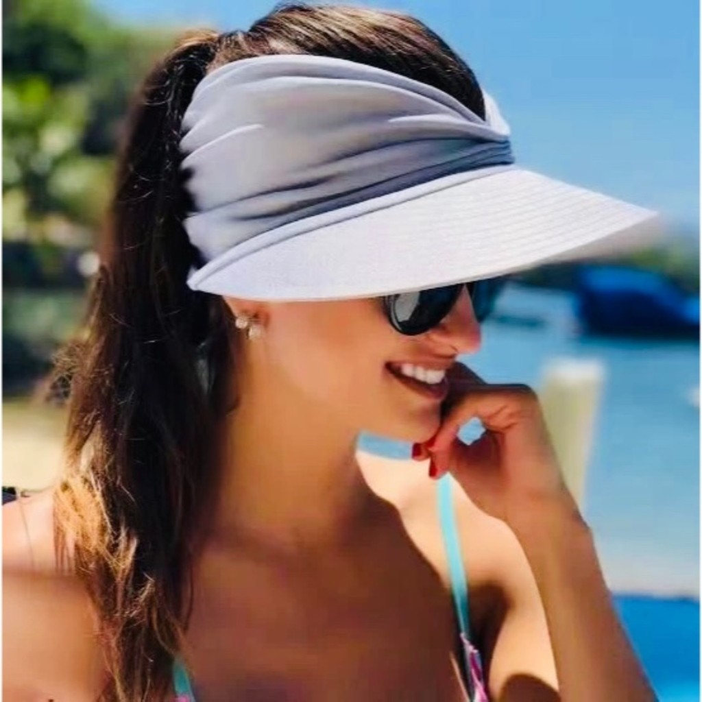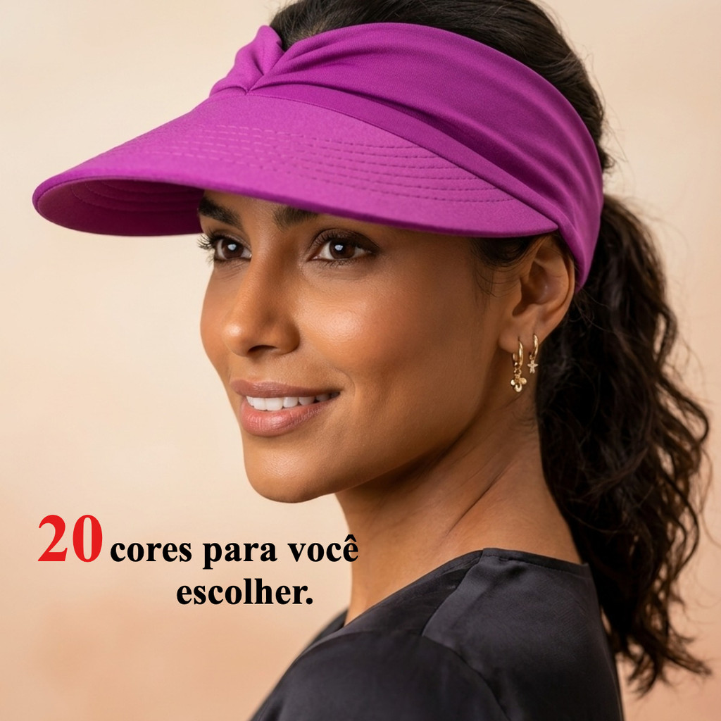 Viseira Feminina Chapéu de Praia Dupla Face Uv50+ Turbante Esporte Verão Corrida Com Proteção Solar