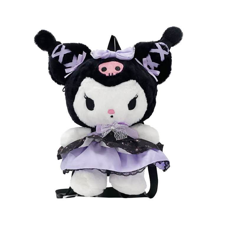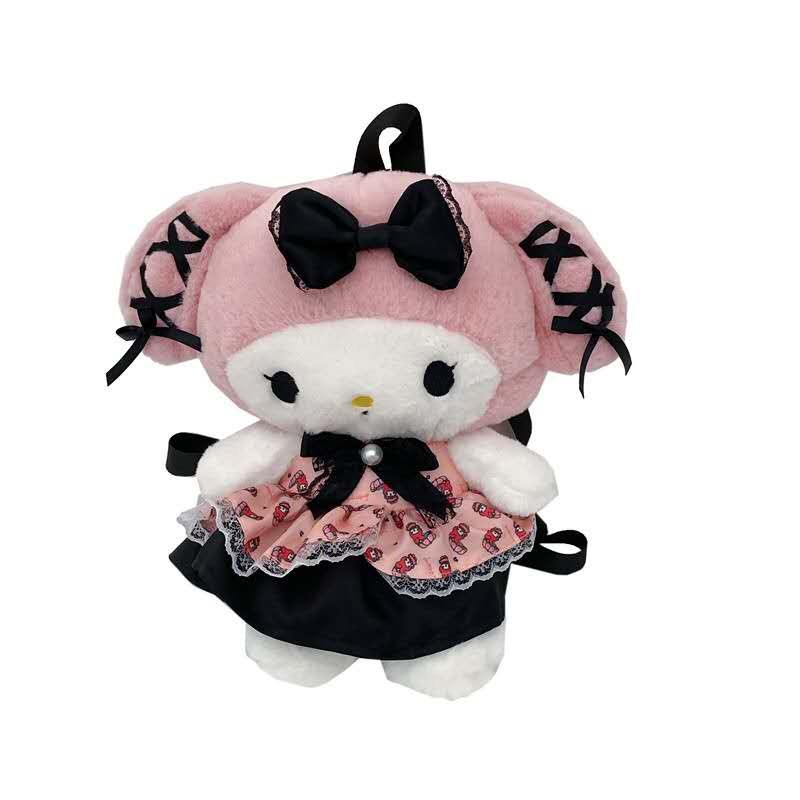 Bolsa Mochila Kuromi & My Melody 28cm – Pelúcia Fofa, Sanrio Original, Estilo Kawaii
