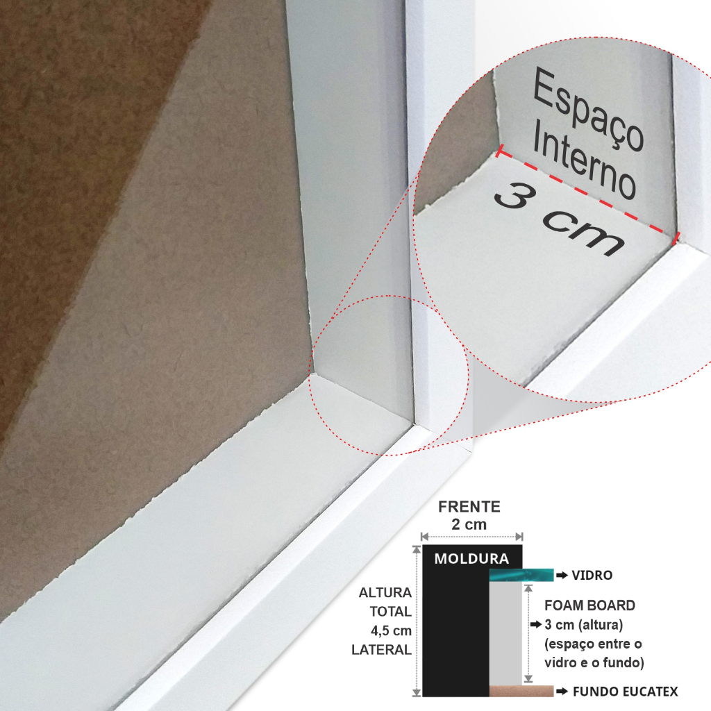 Moldura caixa Alta 50x70cm Com Vidro Profundidade de 3cm