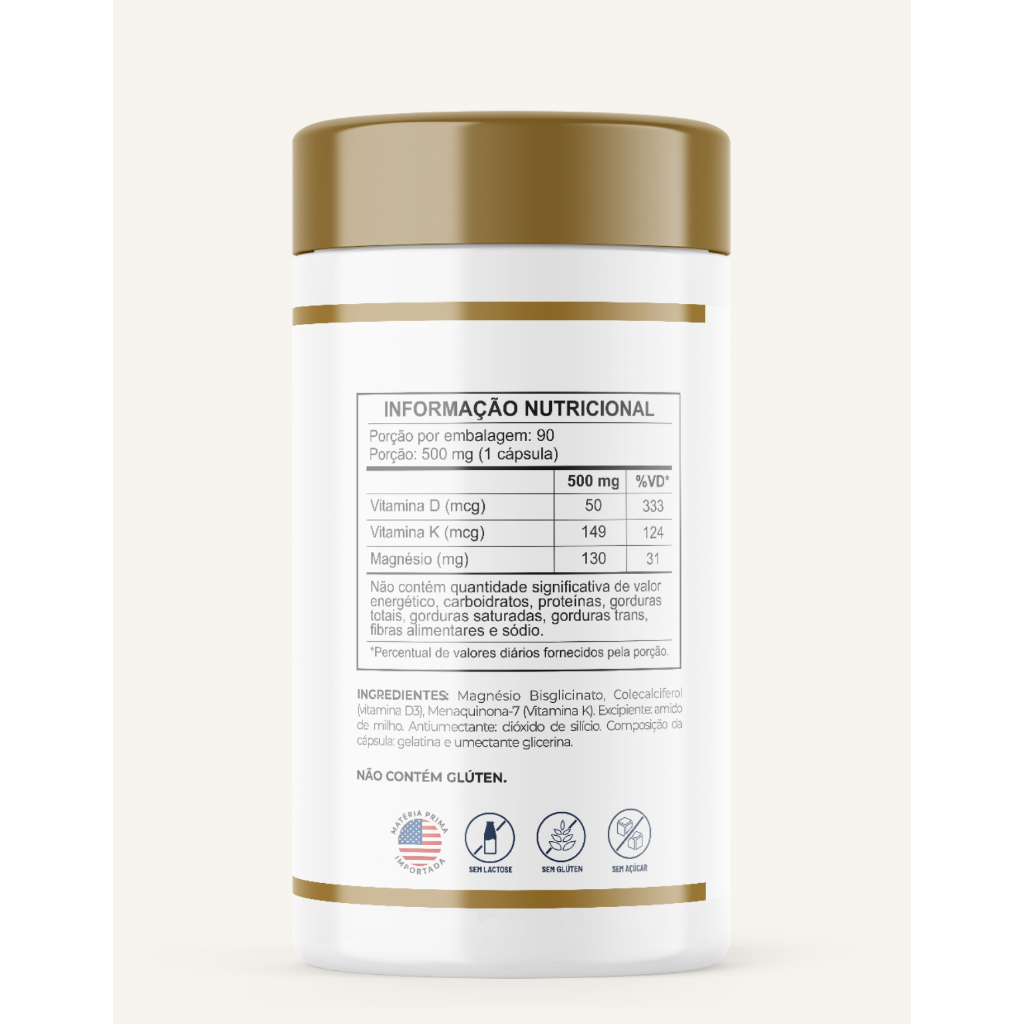 Vitamina D3 K2 MK-7 + Magnésio Bisglicinato | 90 Cápsulas Rende 3 meses | Matéria-prima Importada