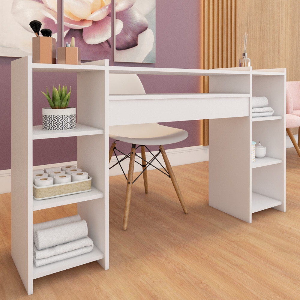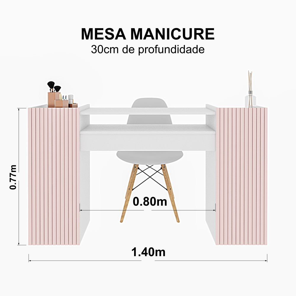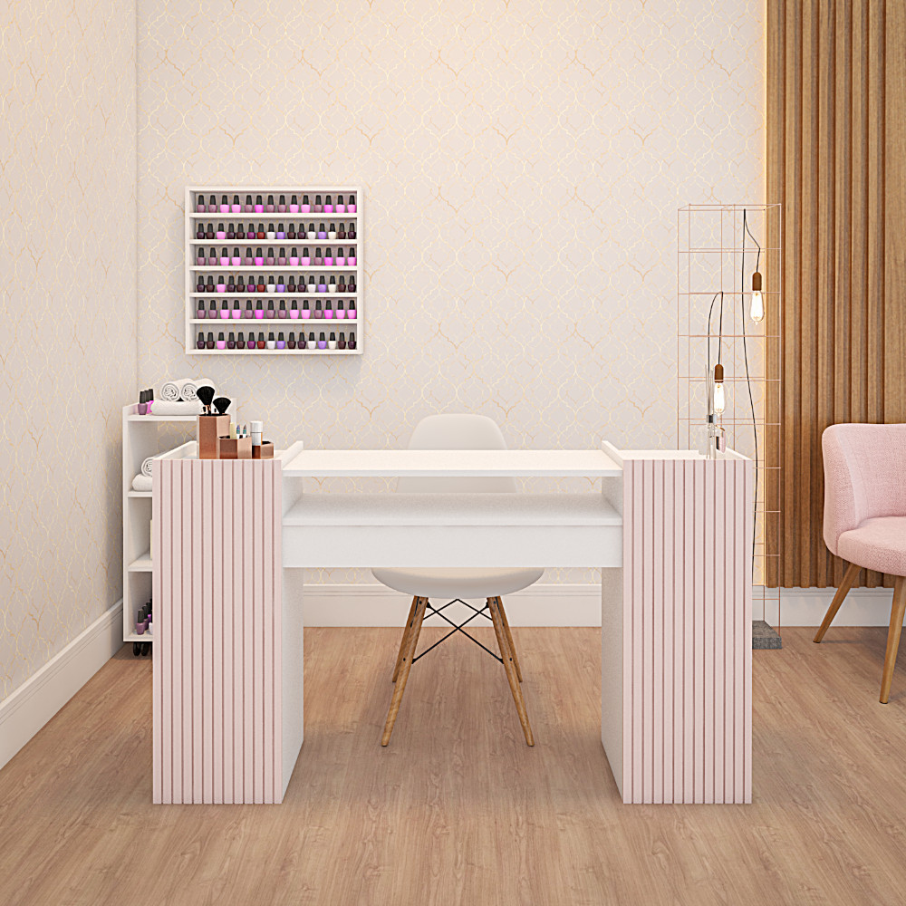 Mesa de Manicure Grande Rosa 140 CM Ripado Para Pedicure Nail Designer Moderna
