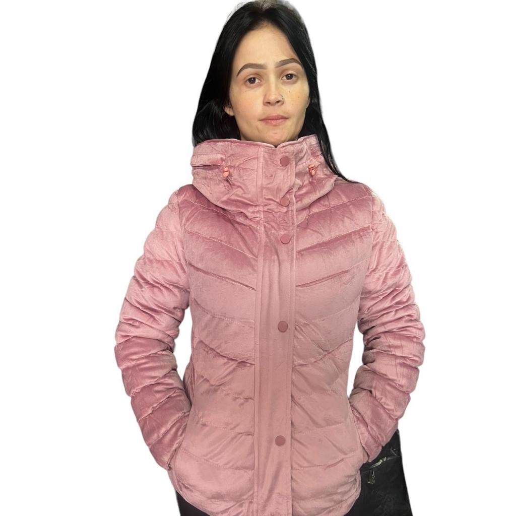 Jaqueta Feminina Gamurça Puffer Com Forro E Capuz Embutido na Gola